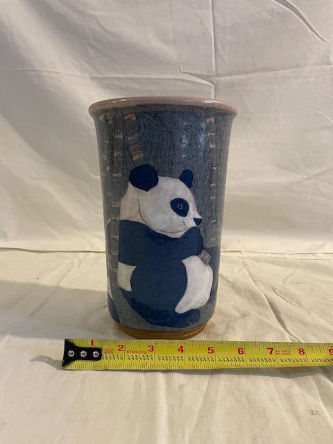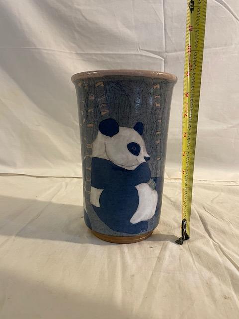 Vintage Panda Vase - pottery 1987 - 9 inches tall