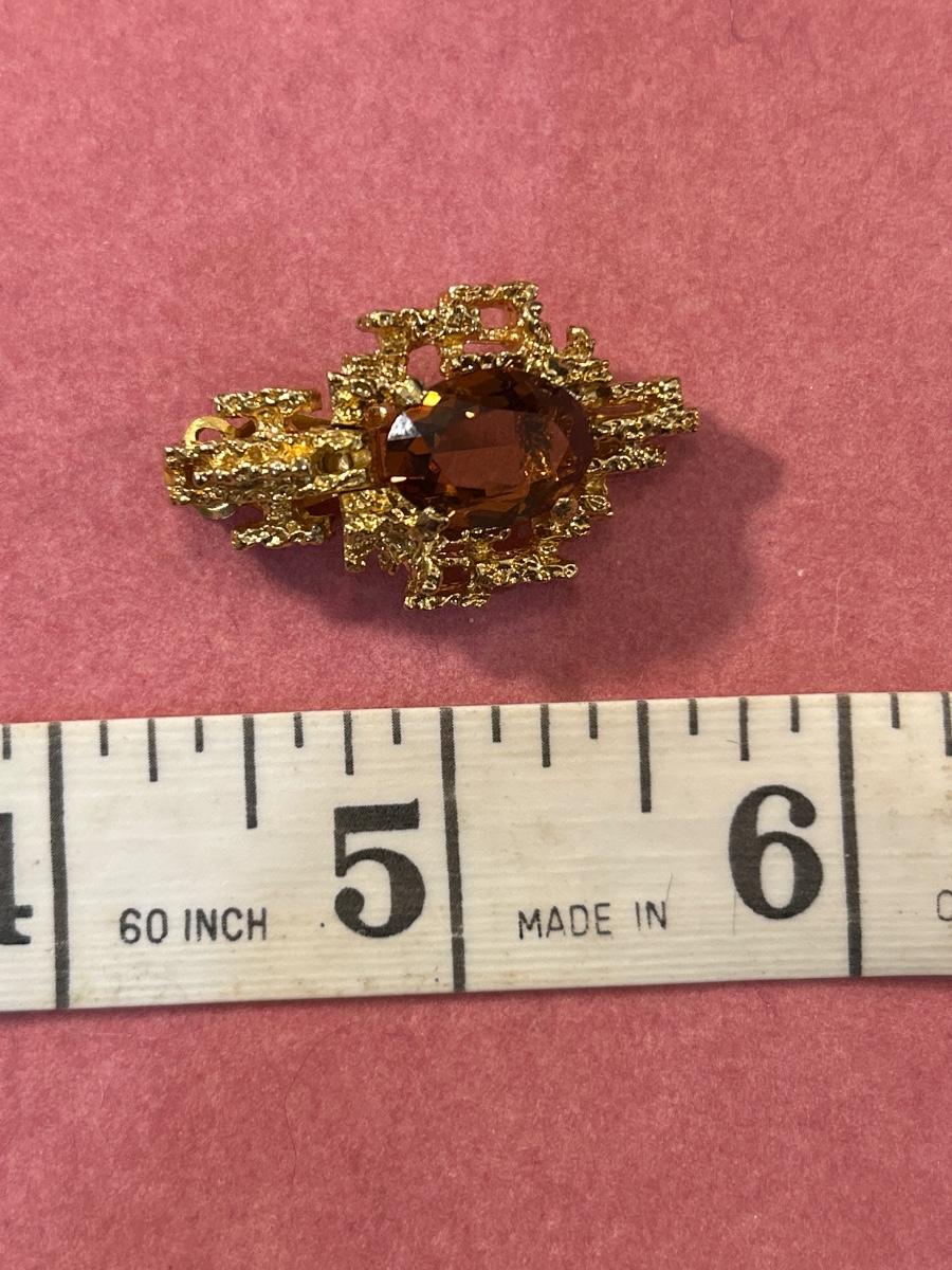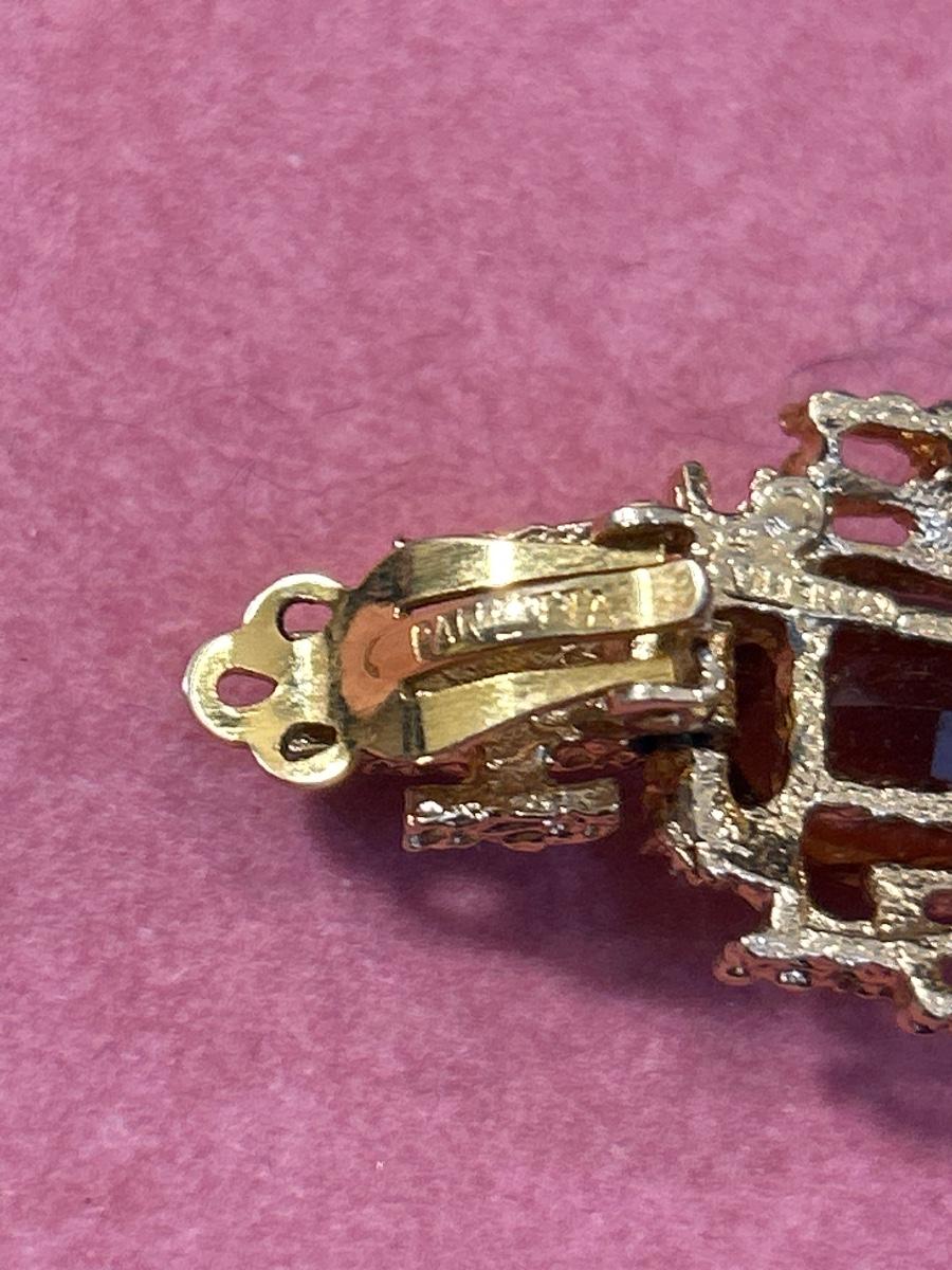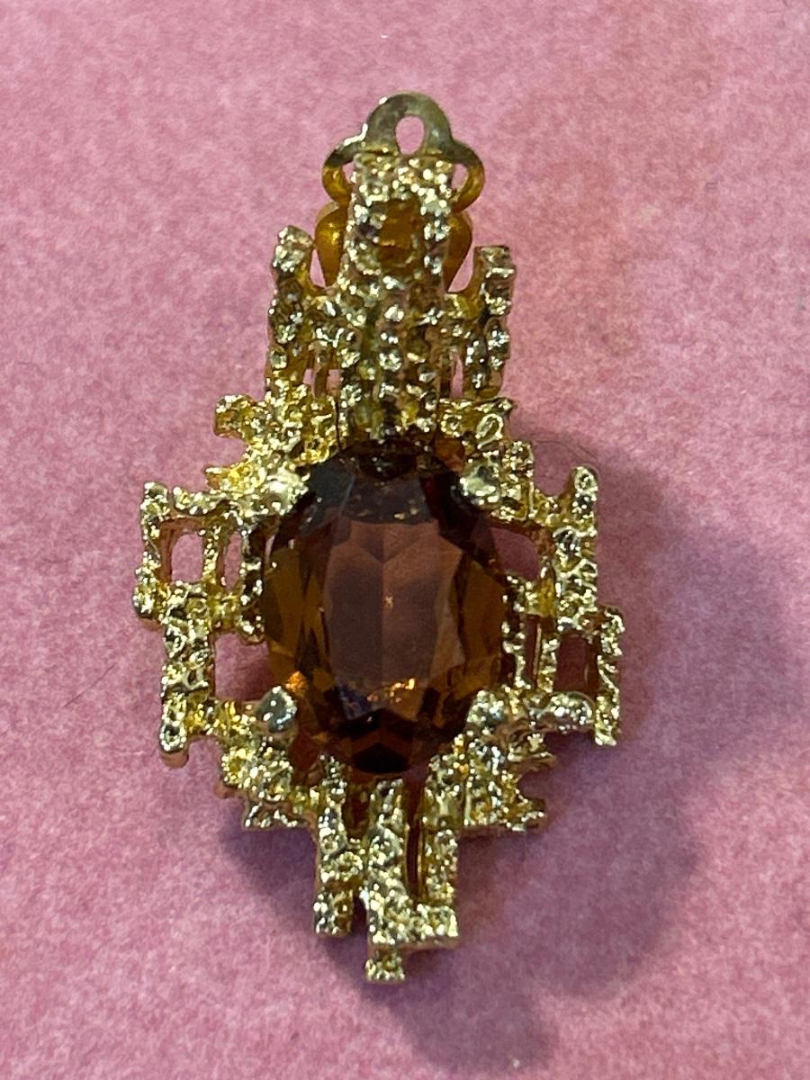 Vintage PANETTA Faux Amethyst MOD BRUTALIST Dangle Drop Clip EARRINGS Gold Tone