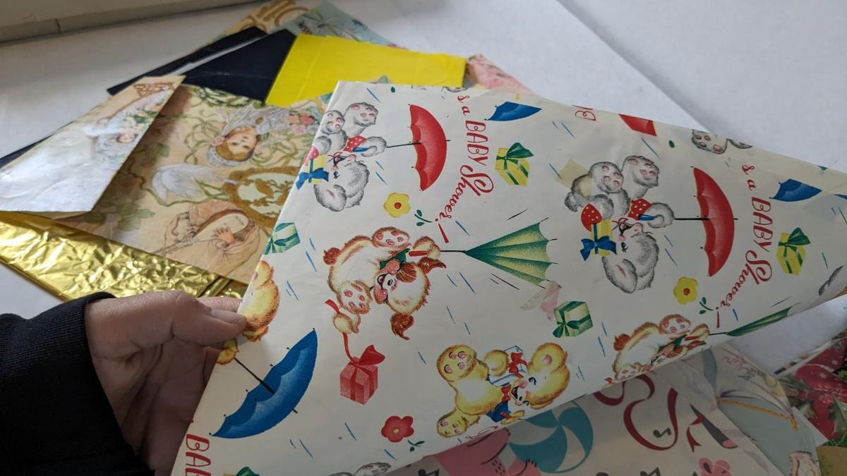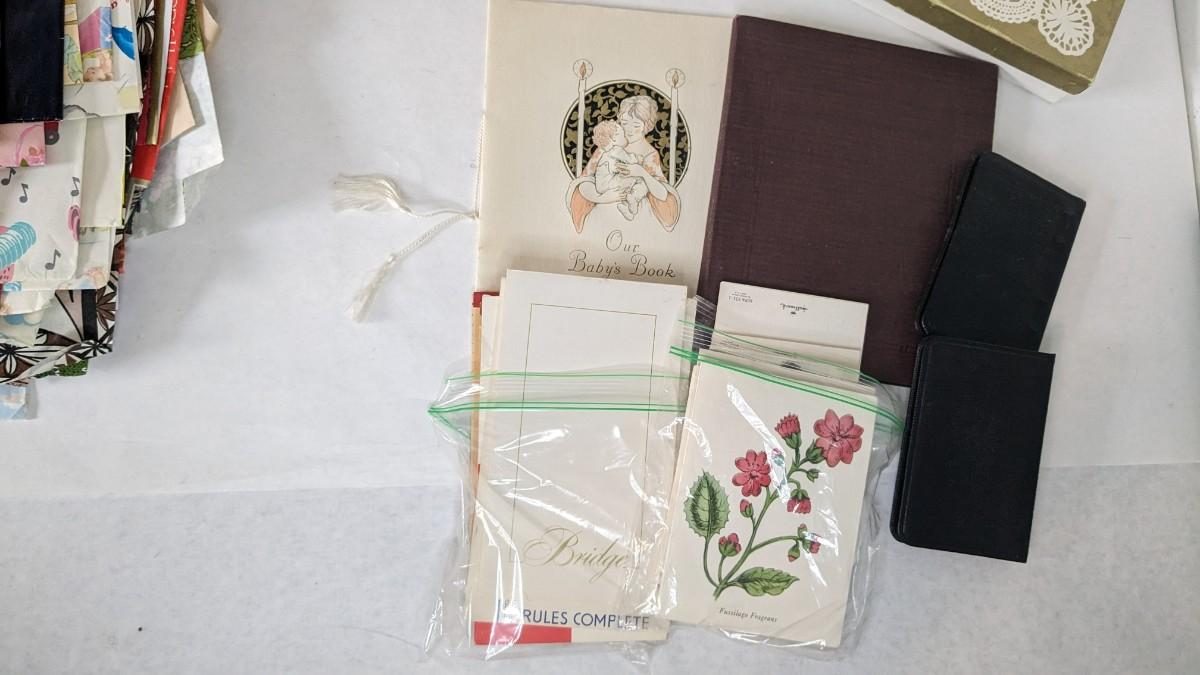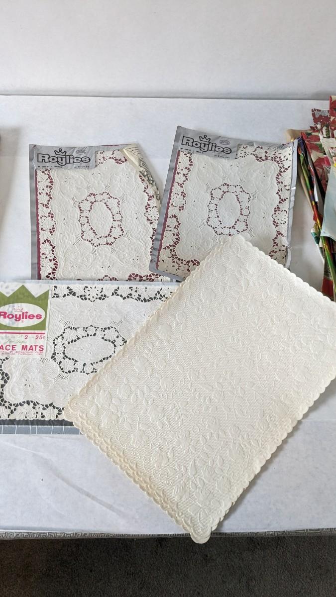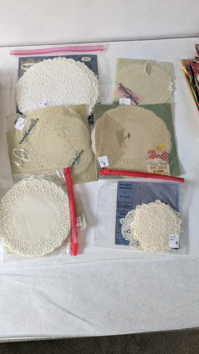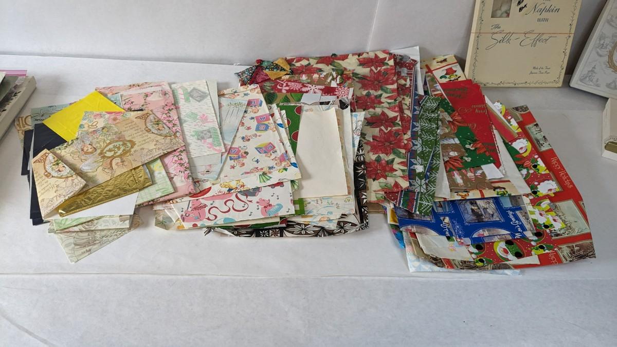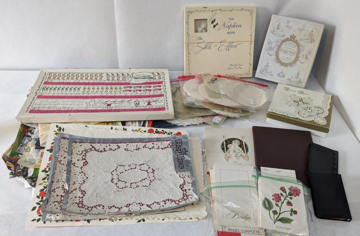 a wonderful variety of vintage paper doilies, wrapping paper, paper napkins, stationary, and a couple of writing books. This is a very fun assortment with a ton of use or upcycle potential. Very neat stuff!