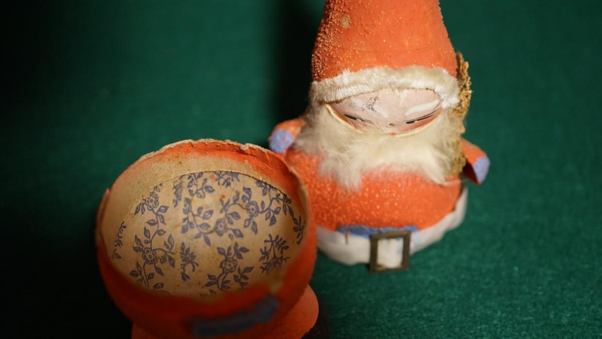 VINTAGE PAPER MACH'E 8 1/2" SANTA CANDY CONTAINER