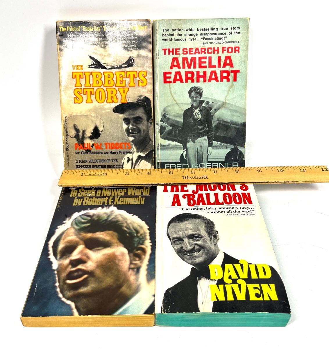 Vintage paperback memoir, pilots, politics, Amelia Earhart, RFK and more