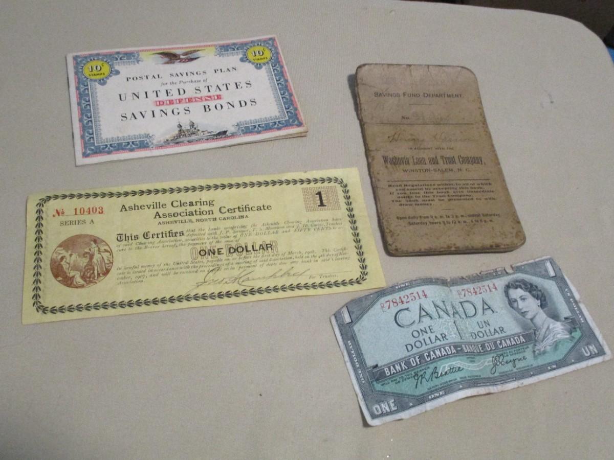 Vintage Papers - Asheville Clearing Association Certificate - Savings Bond Album - Savings Fund Booklet