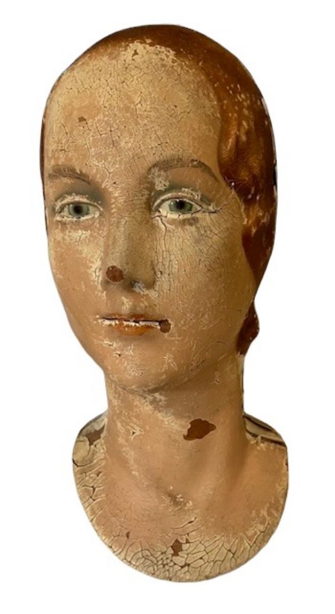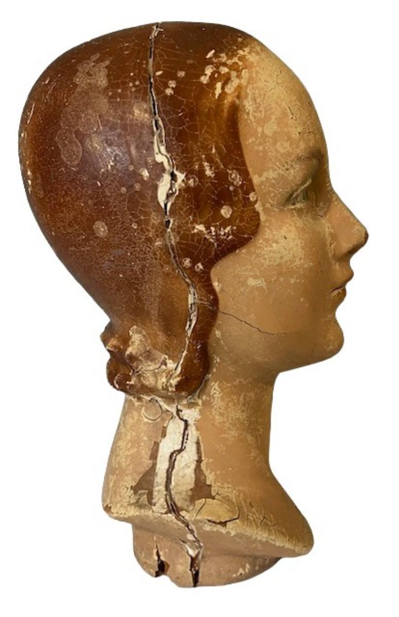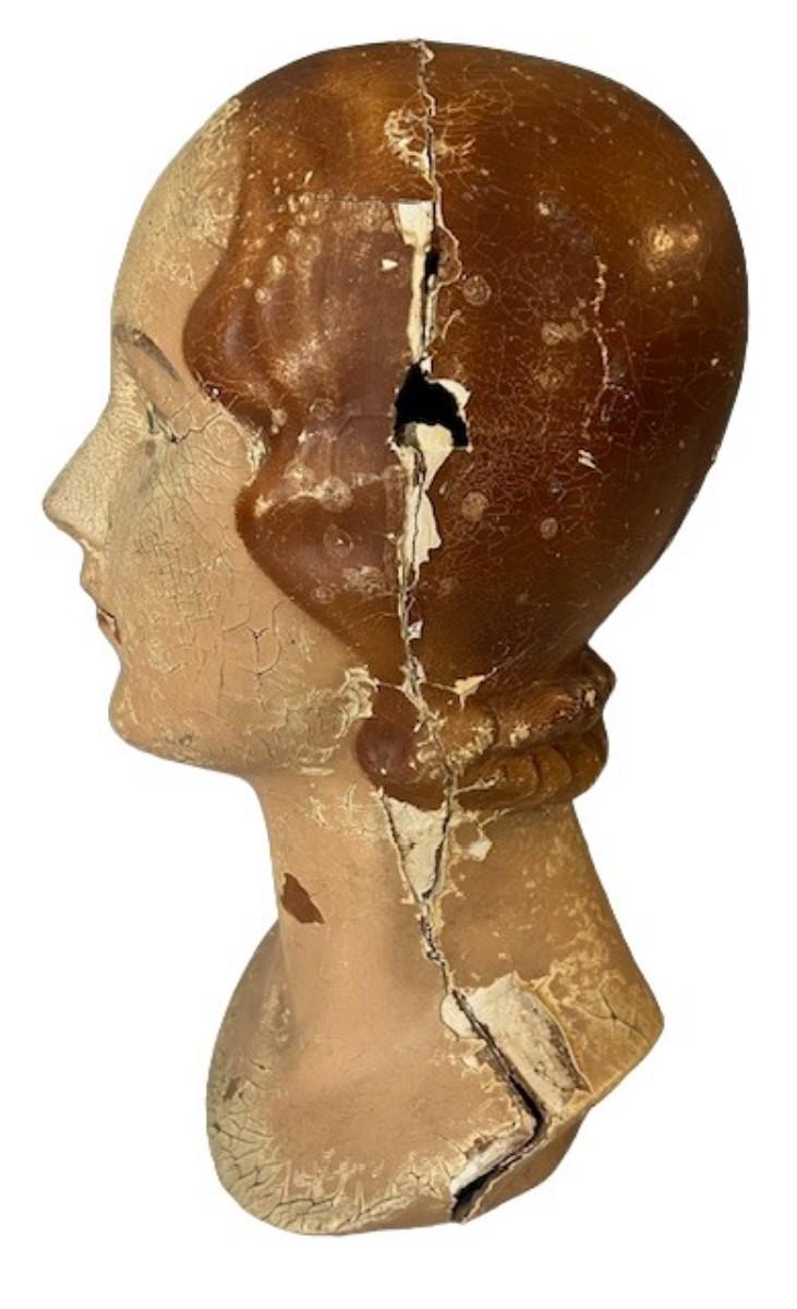 Age related wear, including some cracking and papier mache loss. Measurement: 15"H x 7"W.