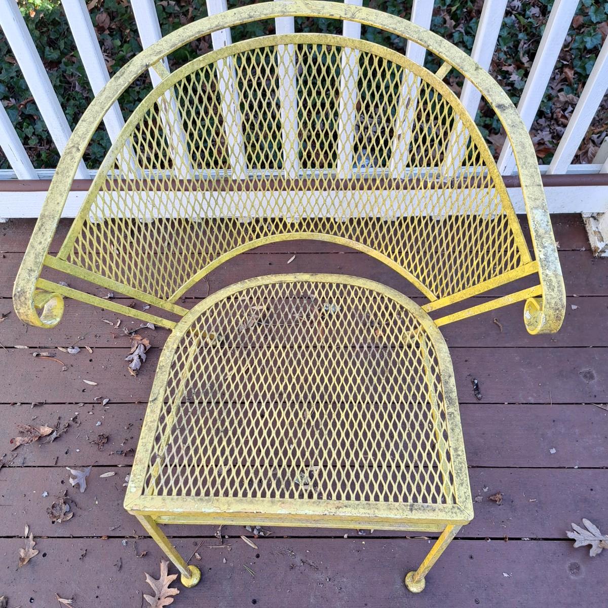 Vintage Parakeet Yellow Metal Mesh Patio Set (P-SD)