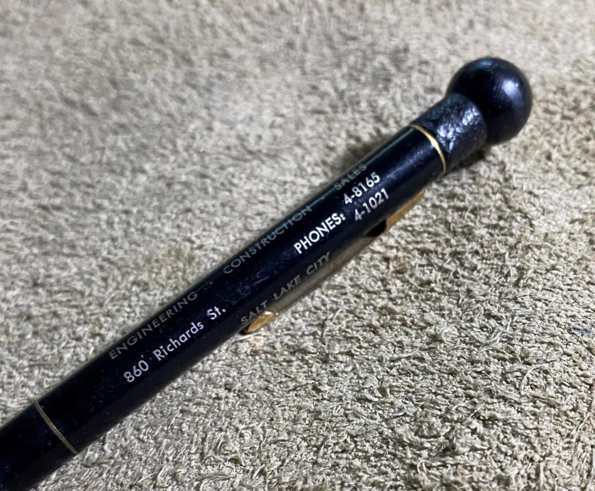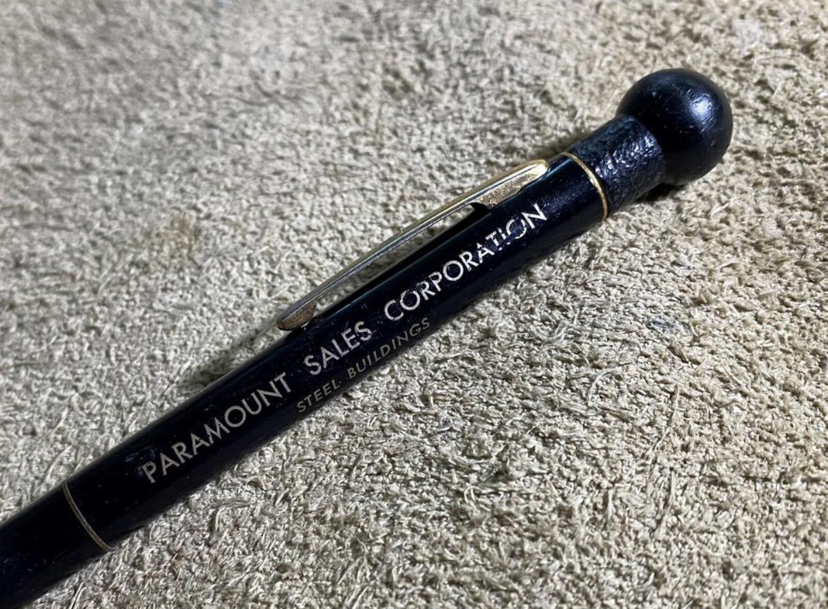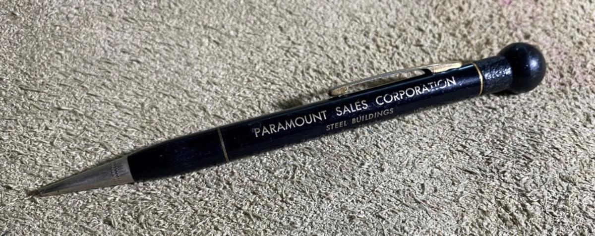 B&B Redipoint mechanical pencil advertising PARAMOUNT SALES CORPORATION in Salt Lake City, Utah...Steel sales..Construction..Engineering...Capped with an 8-Ball tip...5.25" long...As shown..Circa 1940's-1950's...Brown & Bigelow advertising specialty.