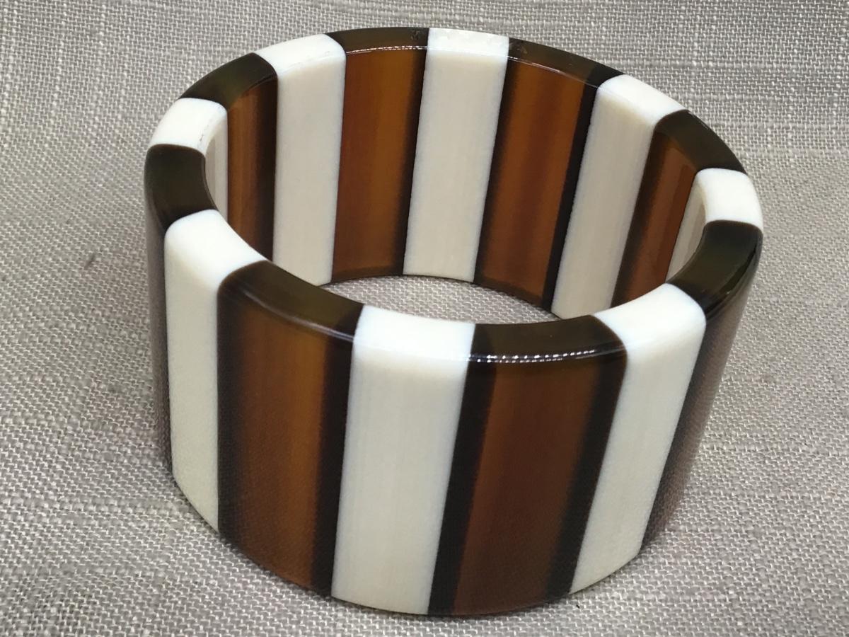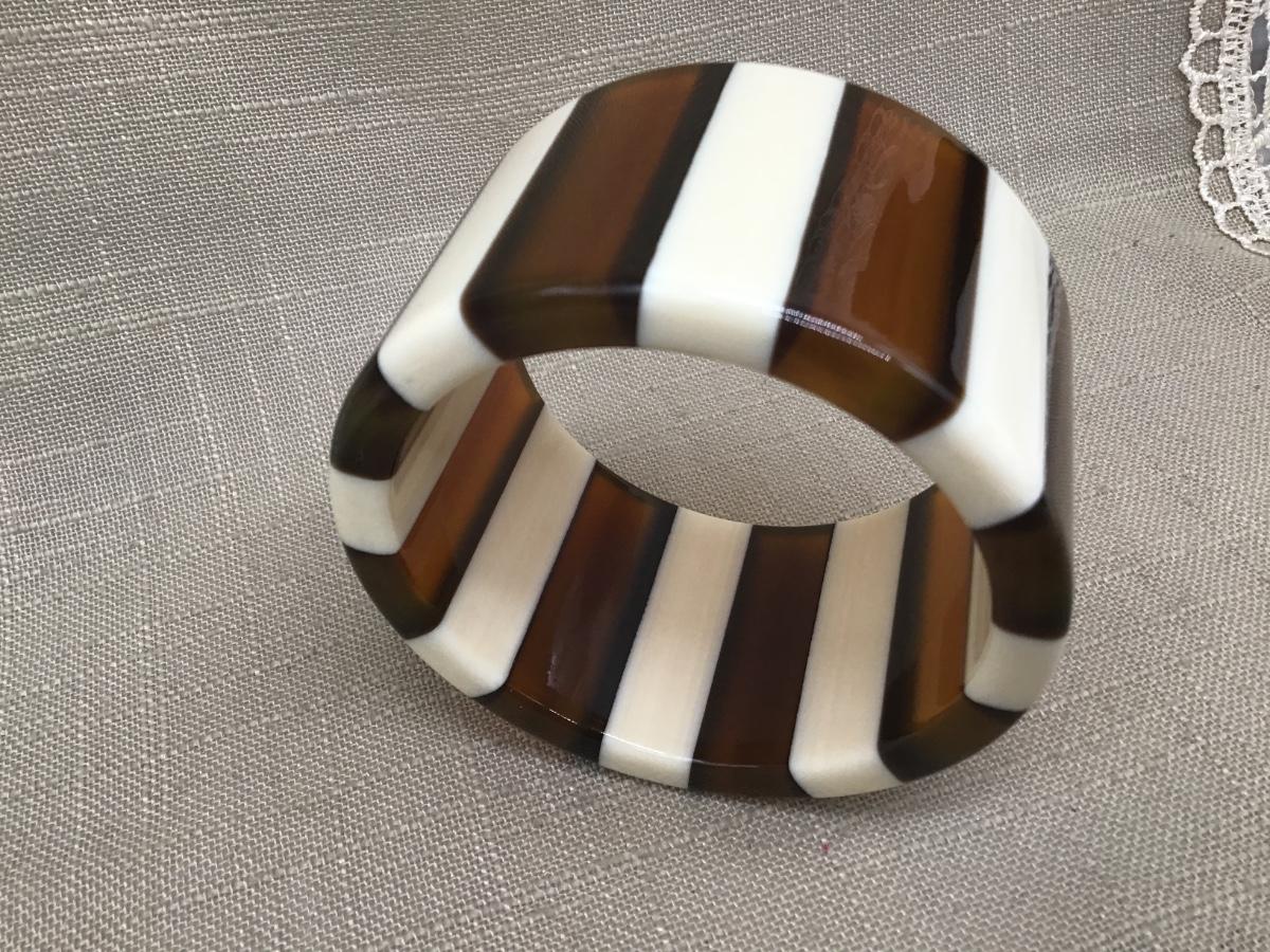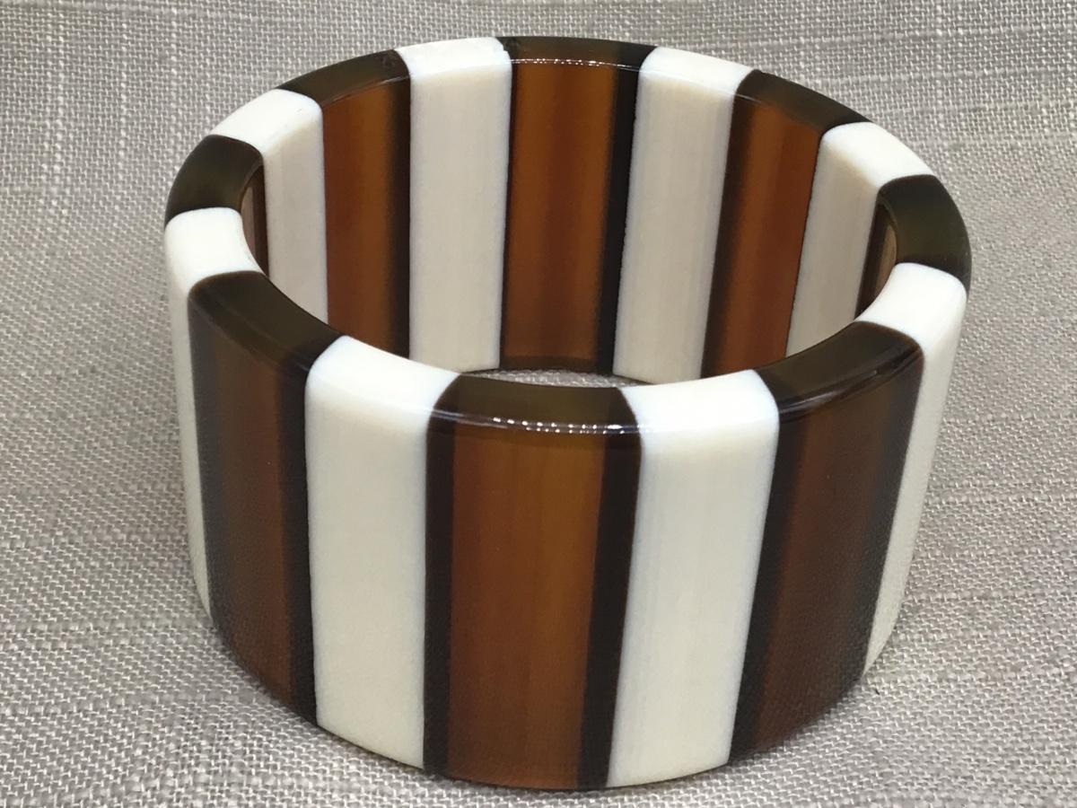 Vintage Paris FURLA Two Tone Amber & Ivory Chunky Lucite Acrylic Bangle Bracelet