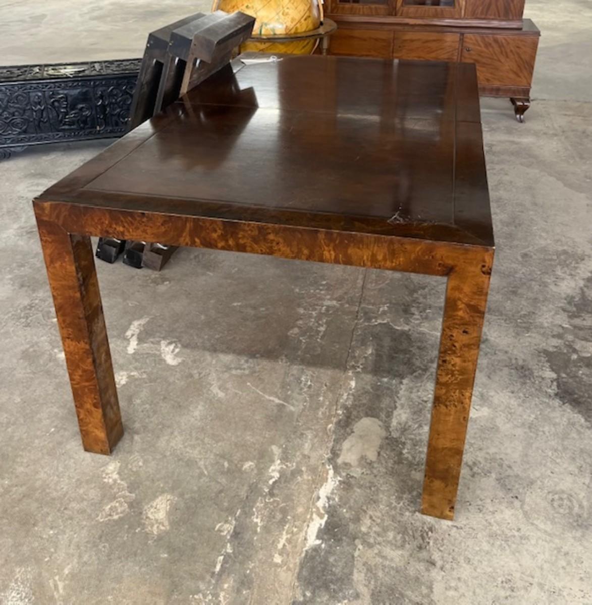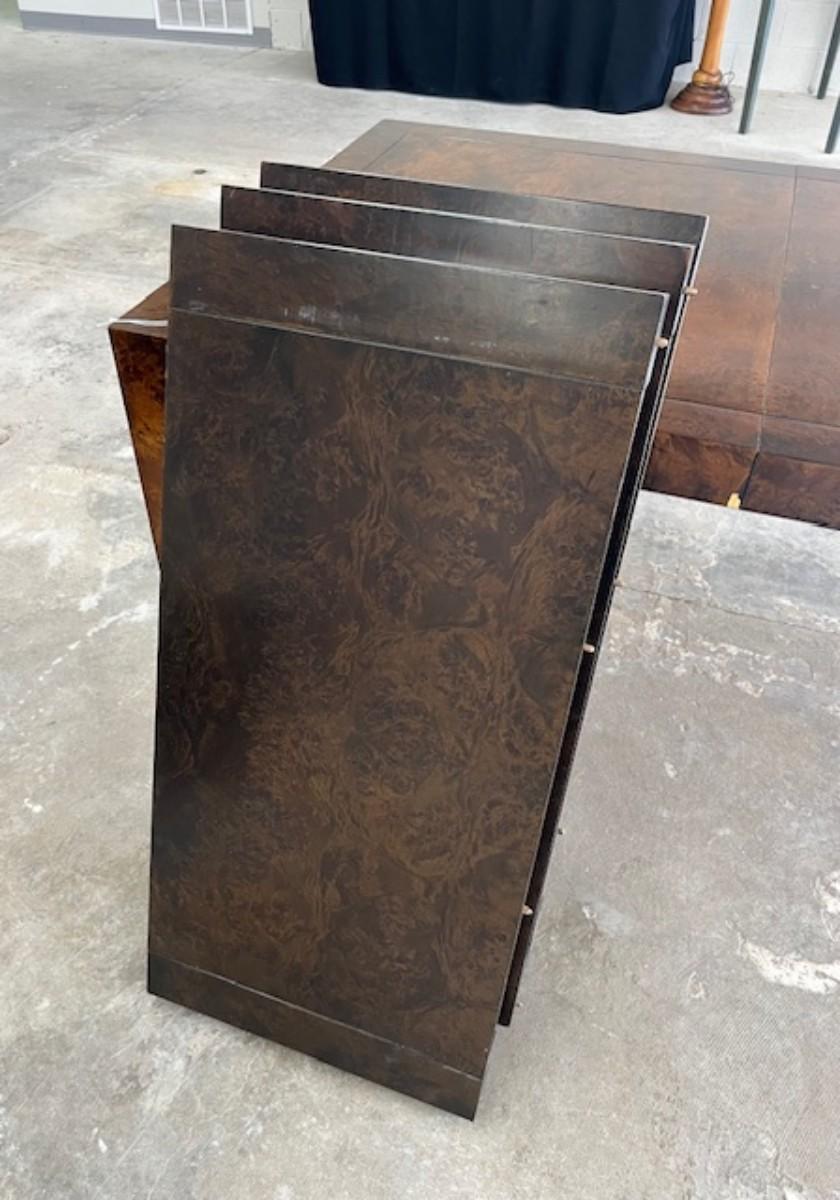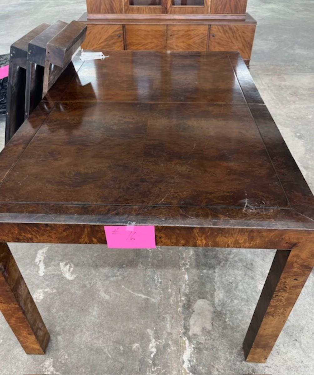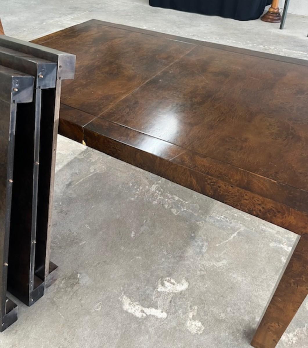 Vintage Paul Evans style Parsons table. 3 leaves. leaves are 18 x 38 each . Table without leaves is 60 x 38. Table has faded and the leaves are darker than the table.