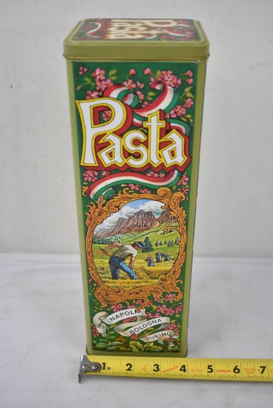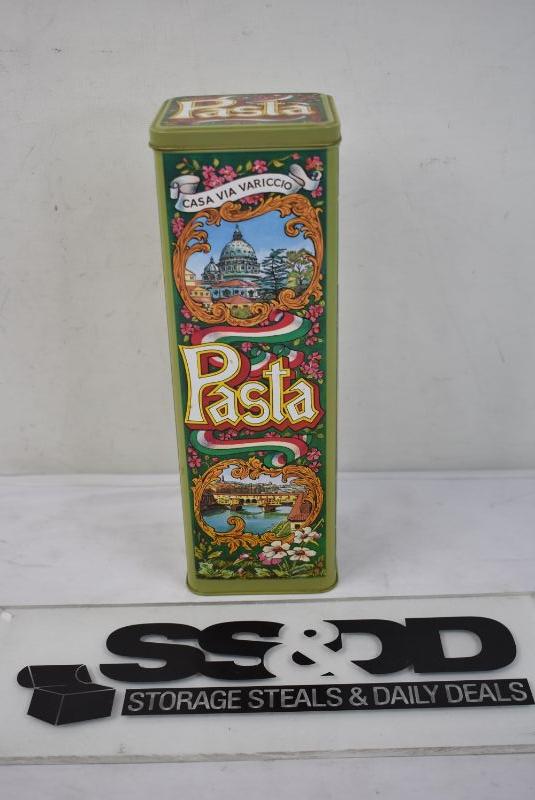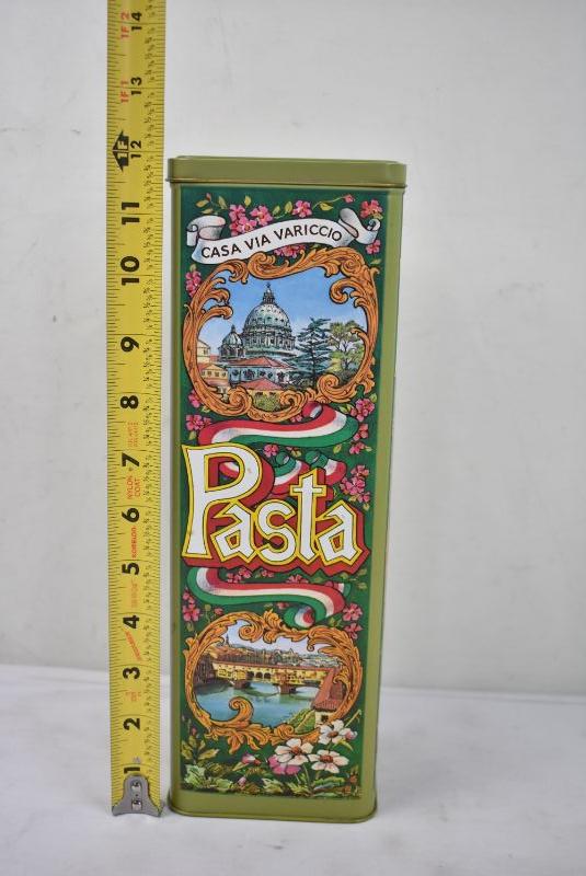 Vintage Pasta Tin: Casa Via Variccio Napoli Bologna Turino with Hinged Lid
