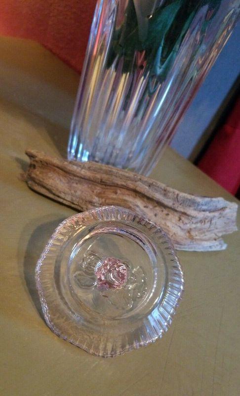 Rose Art Glass Ring Holder Tree Trinket Dish Jewelry