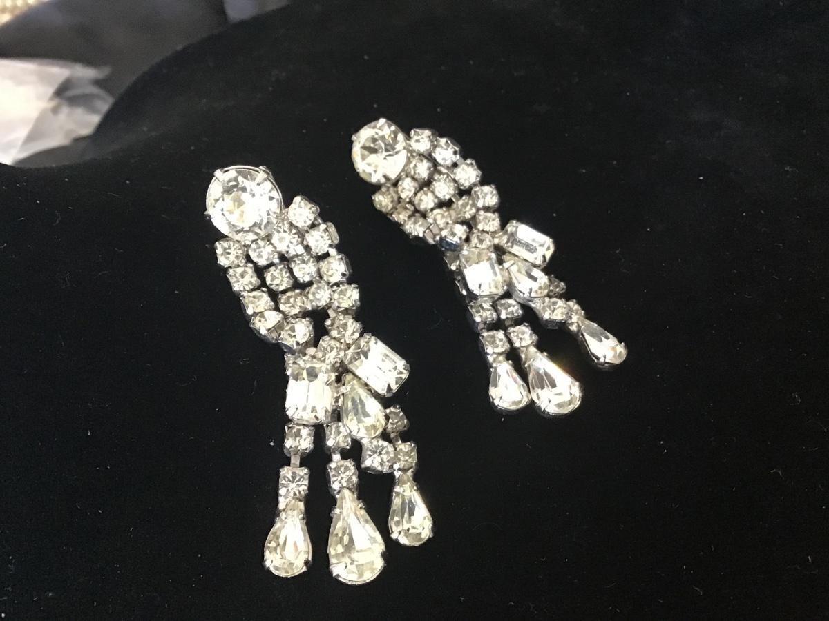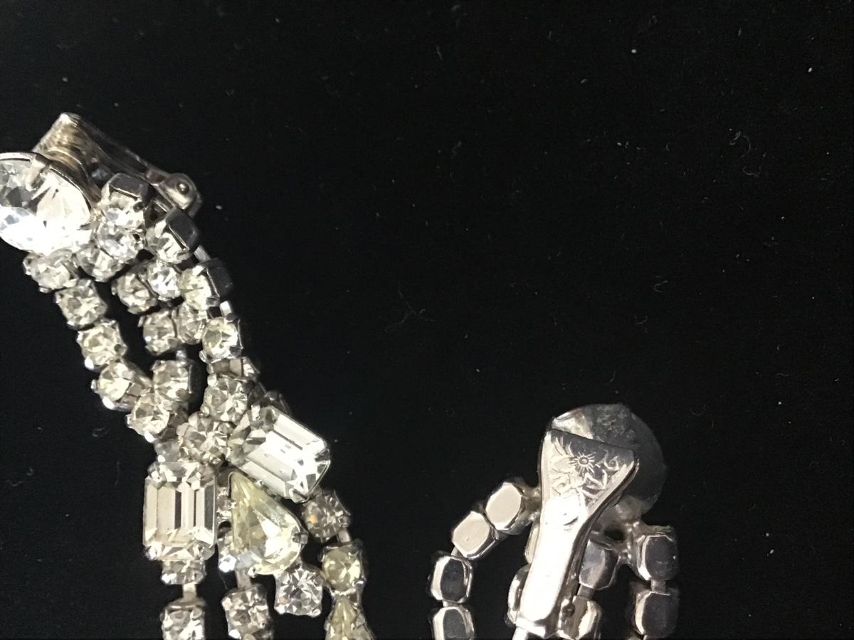 Vintage Pat Pending Marked Dangle Rhinestone Earrings