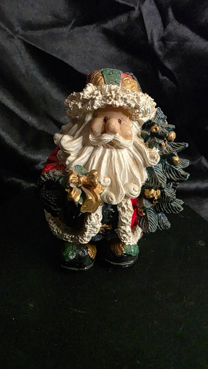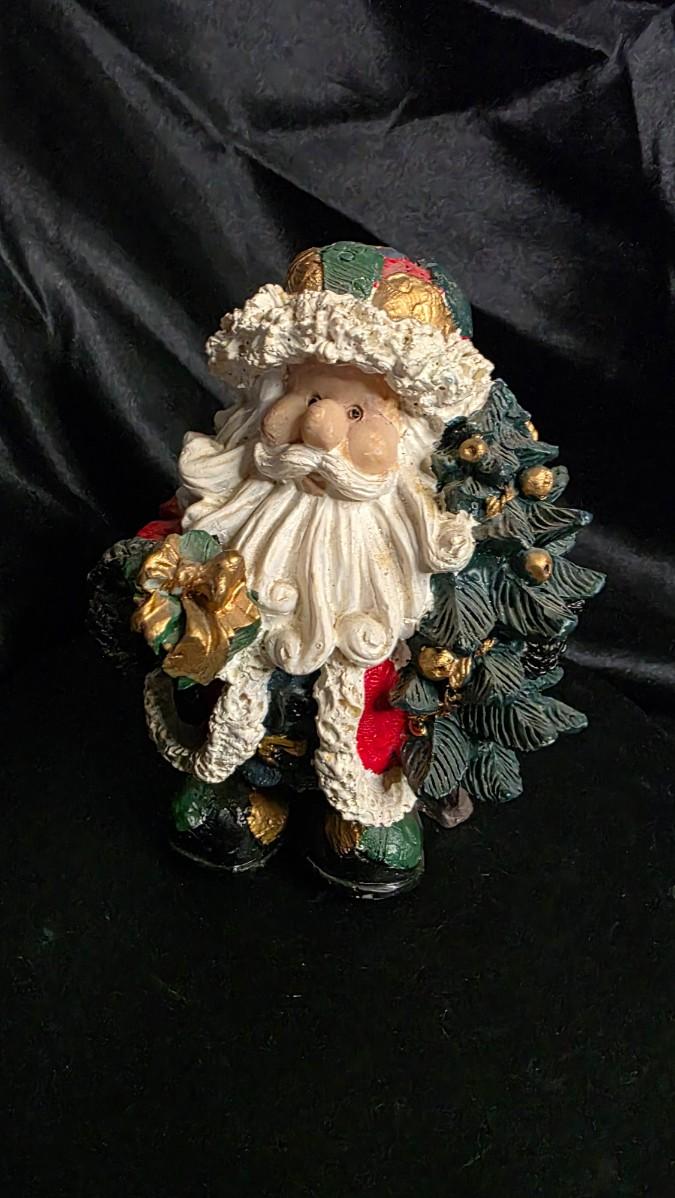 This vintage-style Santa figurine brings classic Christmas storytelling to life through richly layered textures, warm seasonal colors, and a handcrafted charm that feels straight out of an old-world holiday village. Santa stands bundled in a patchwork coat of deep reds, forest greens, and soft winter whites, each panel highlighted with sculpted details that create a sense of depth and nostalgic character. His expressive face and curled beard add warmth and personality, while the evergreen wreath he carries—trimmed in golden accents—introduces a festive, welcoming touch perfect for the season.