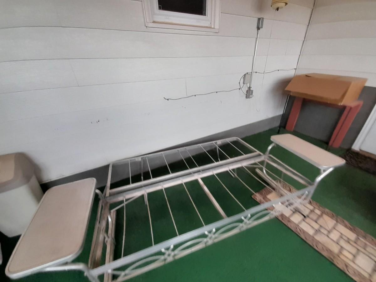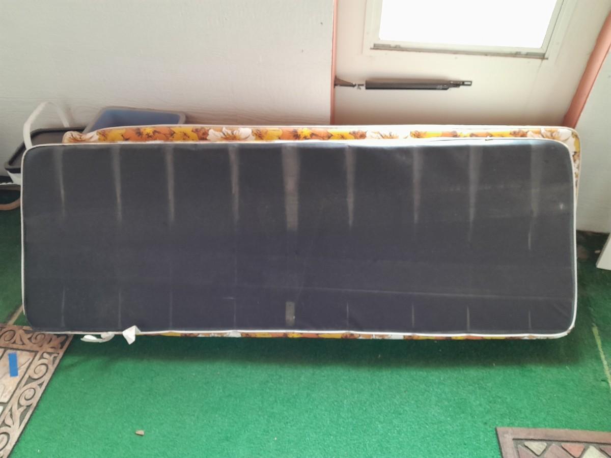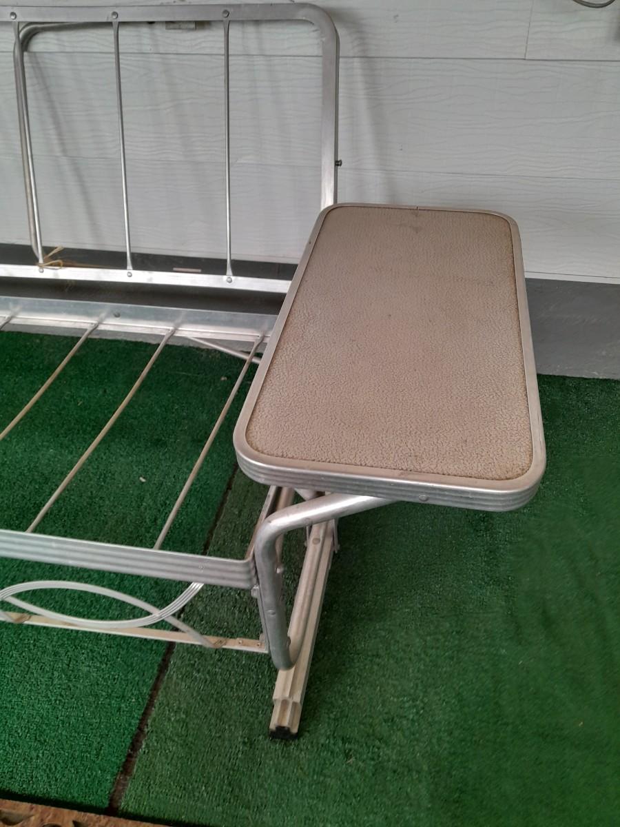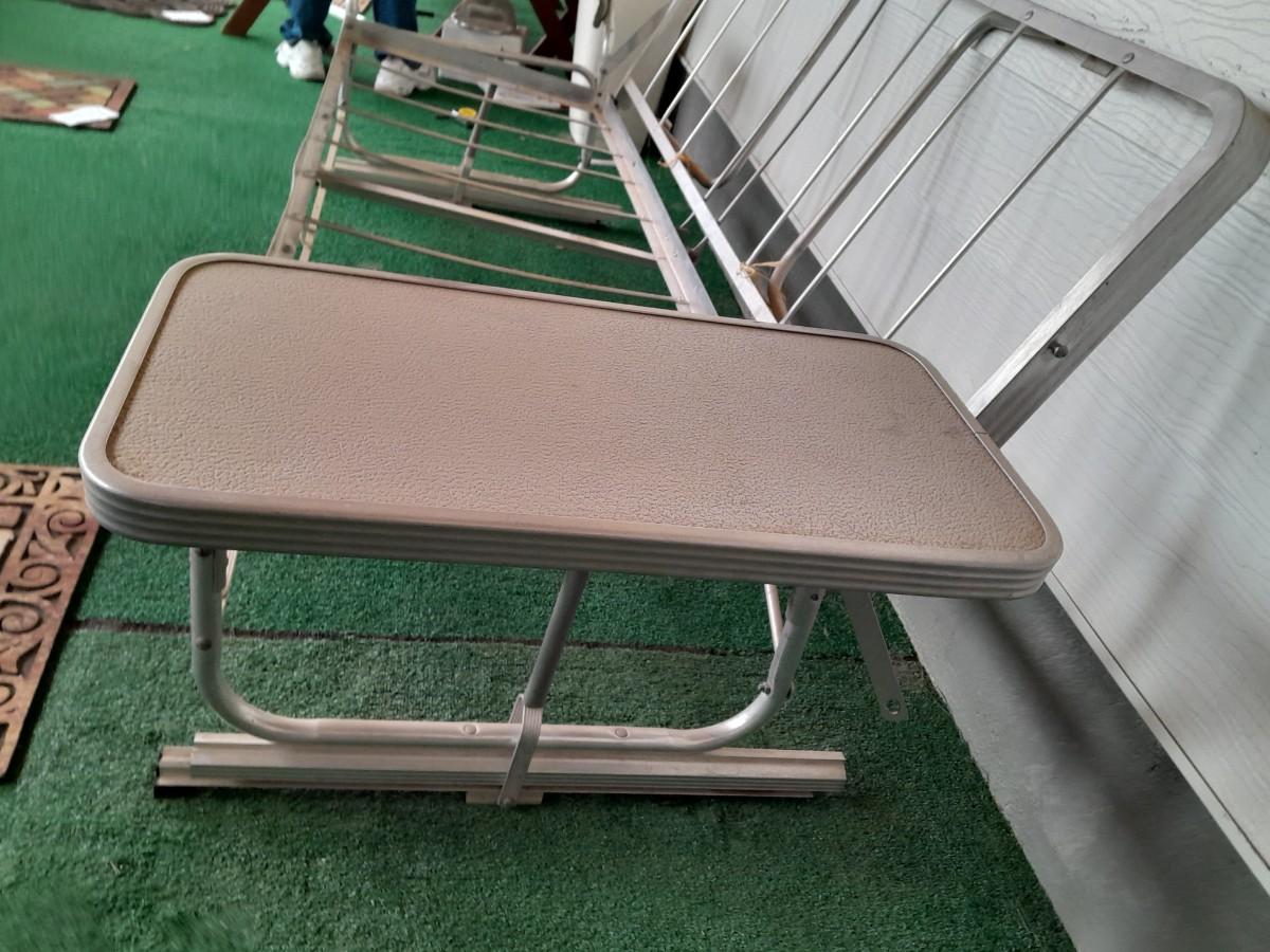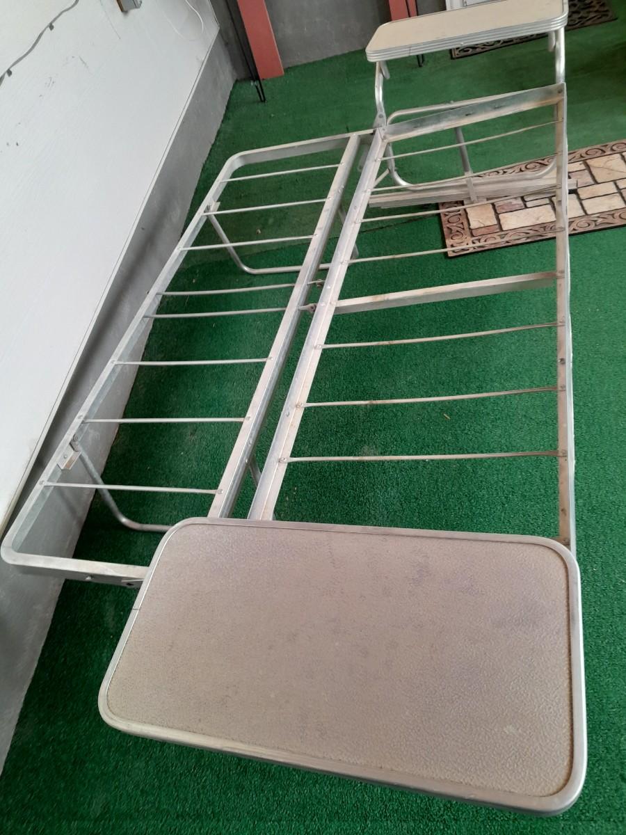 VINTAGE PATIO BENCH / FUTON LIKE LAYS INTO BED WITH TWO ATTACHED SIDETABLES 30" X 88" X 30" AND OUTDOOR BLANKET COVER