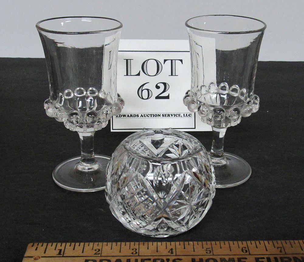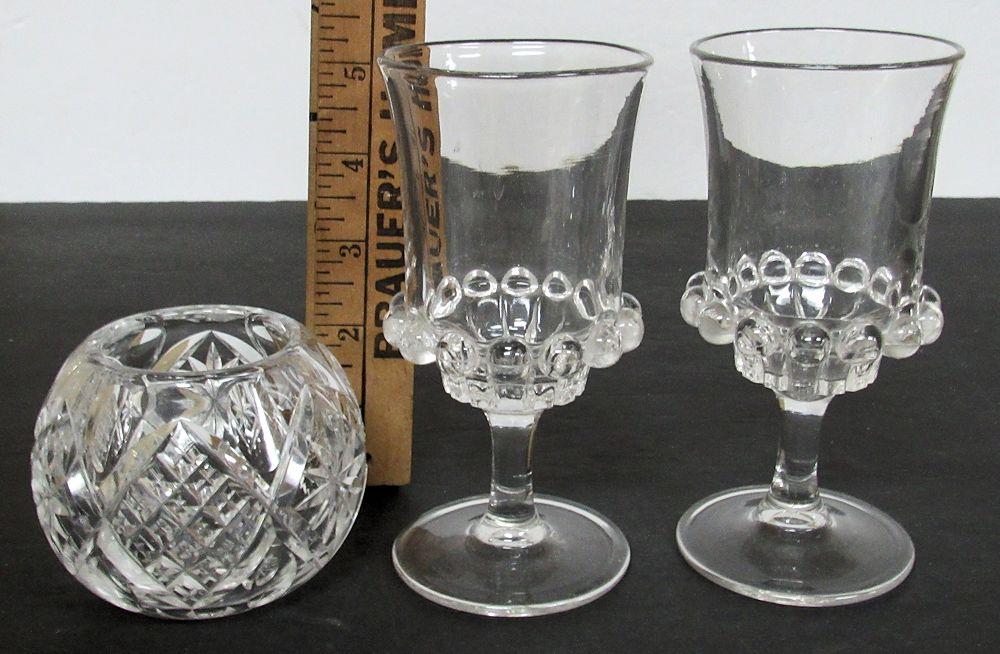 Vintage Pattern Glass, 2 Goblets, Atlas Pattern, and a Small Rose Bowl, Pattern Unknown