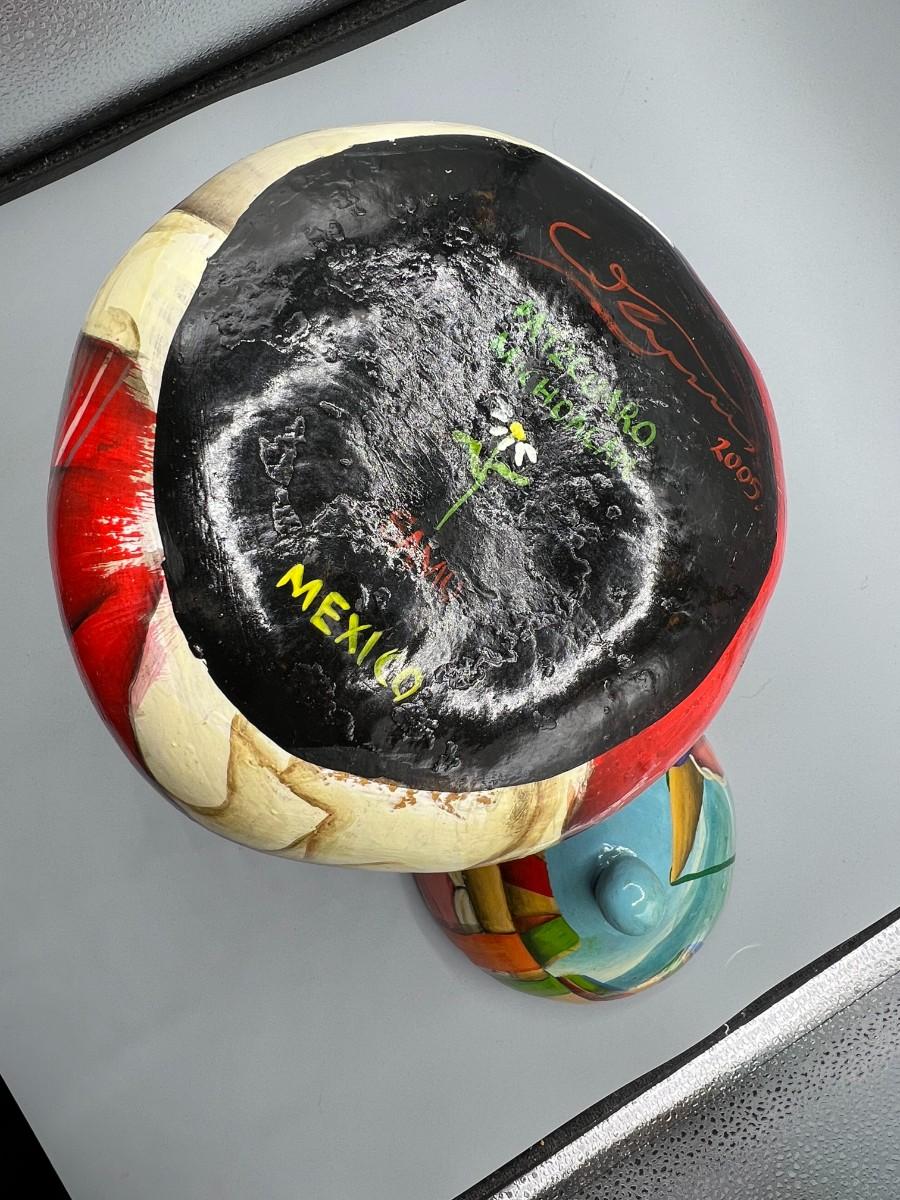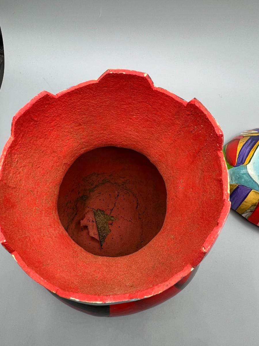 Vintage Patzcuaro Michoacan México Dance of the Old Man Danza de los Viejitos Handmade Paper Mache Souvenir Vessel Container, there is a crack on the lid, but there is no other significant damage and is in good displayable condition. Check pictures for more details and for sizing.