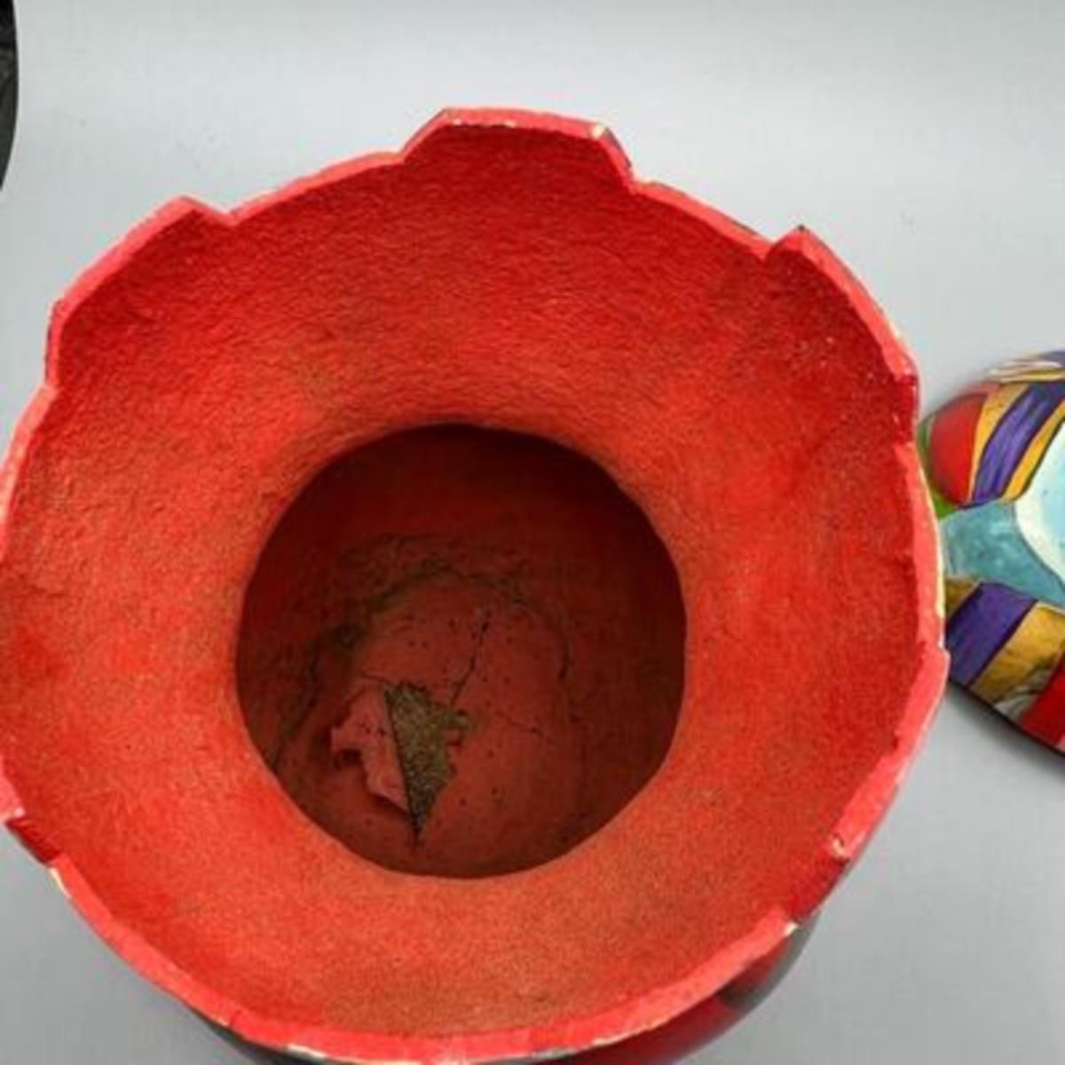 Vintage Patzcuaro Michoacan México Dance of the Old Man Danza de los Viejitos Handmade Paper Mache Souvenir Vessel Container, there is a crack on the lid, but there is no other significant damage and is in good displayable condition. Check pictures for more details and for sizing.