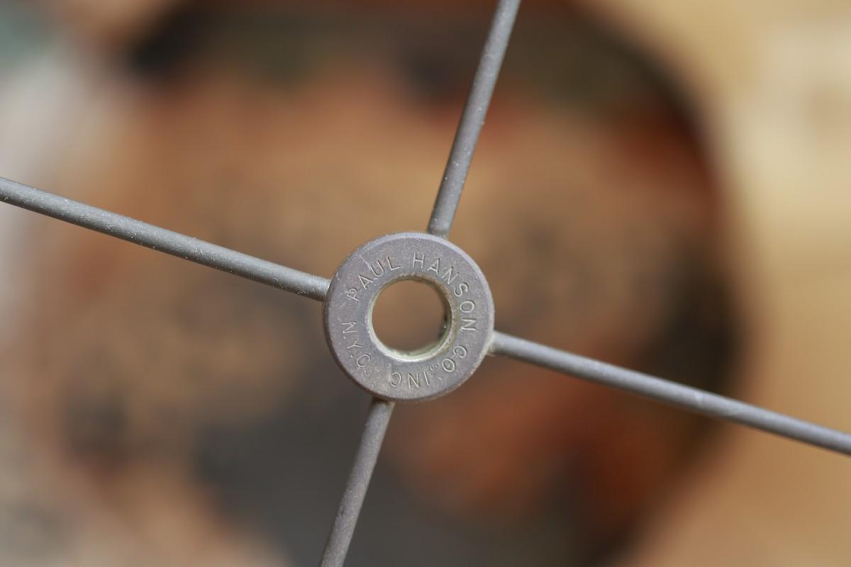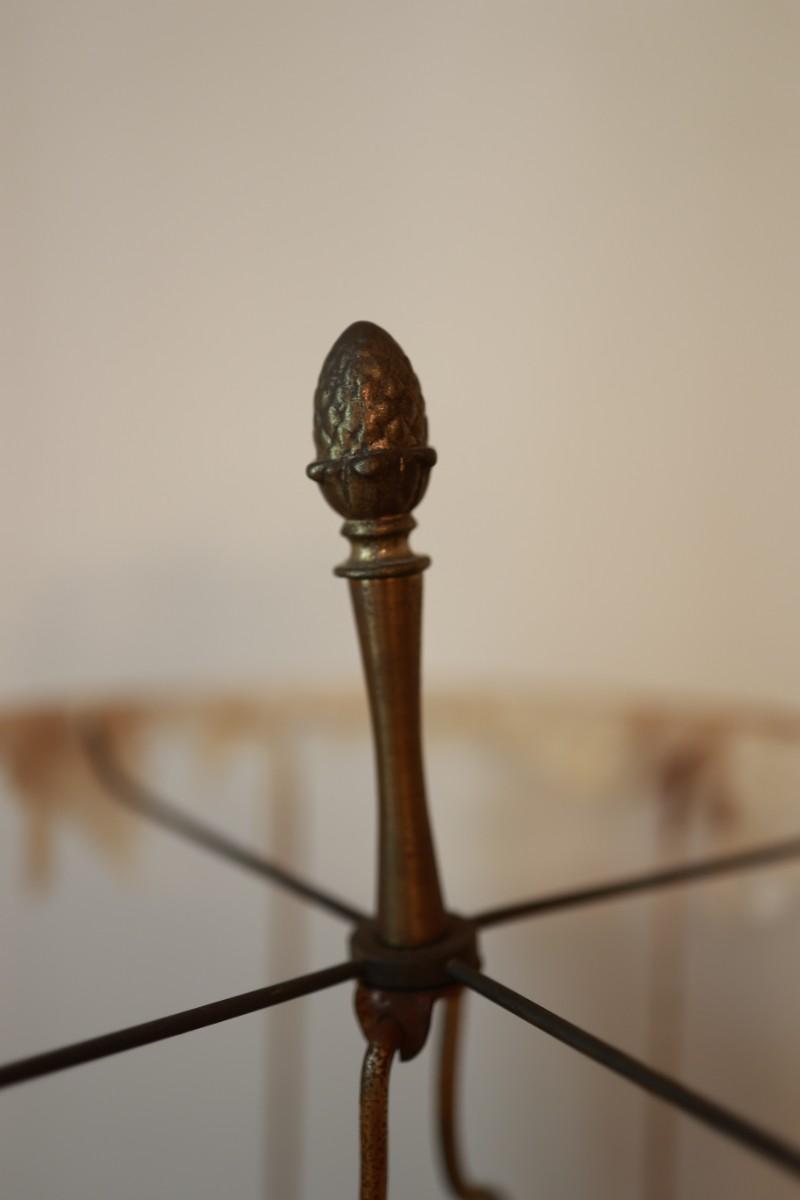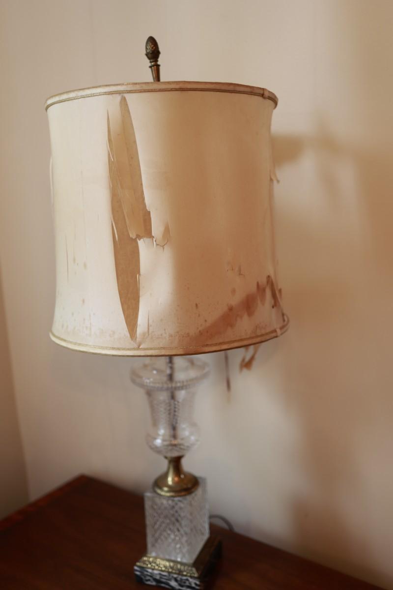 The lamp shade needs repair. See detailed photos for condition.