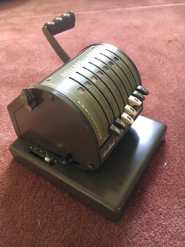 Vintage Paymaster Check Writer Imprinter - With Keys Made In USA - fine working order