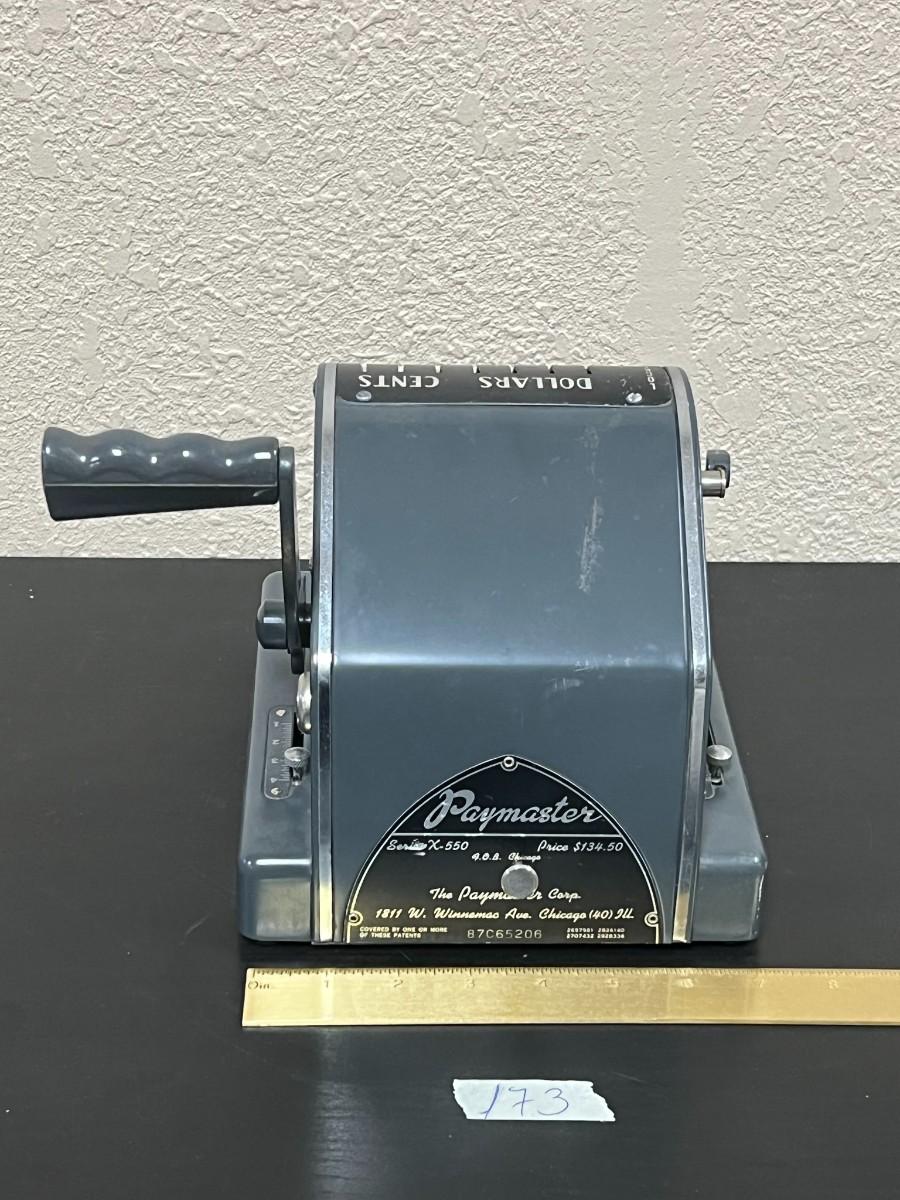 Vintage Paymaster Manual Check Printer series X550/ Embosser Gray black eco Look Office Decor