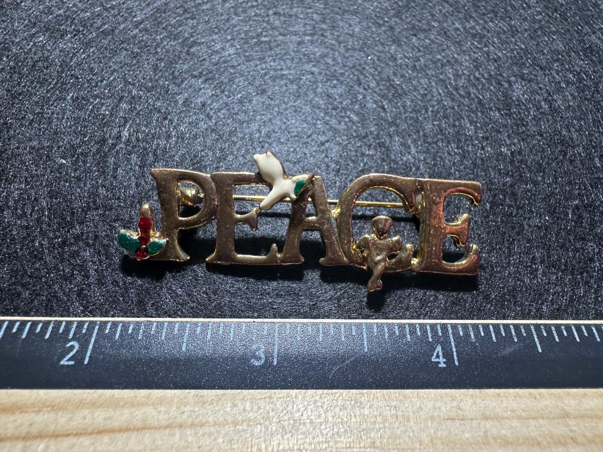 Vintage peace Christmas dove angel brooch