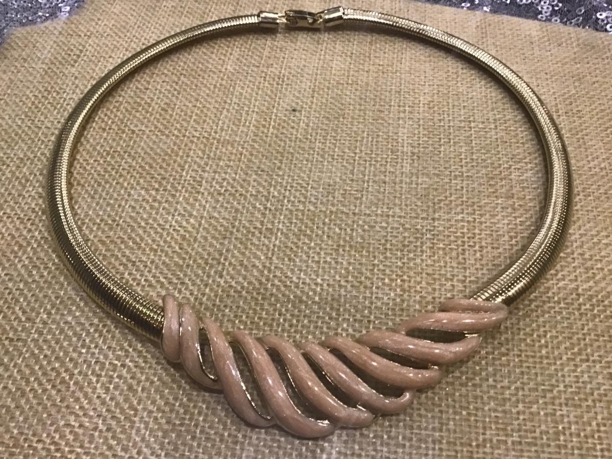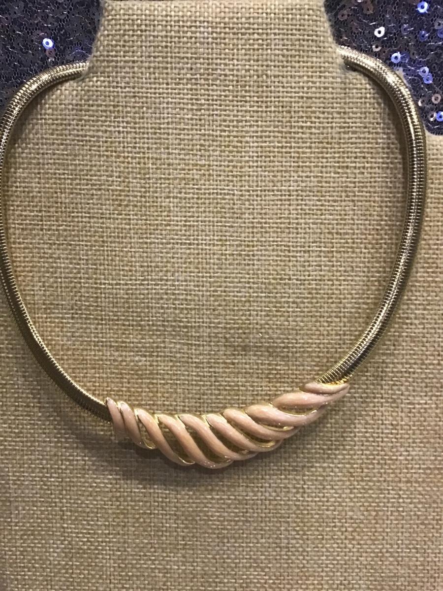 Vintage Peach Enamel Gold Tone Pendant Choker Necklace 1980s