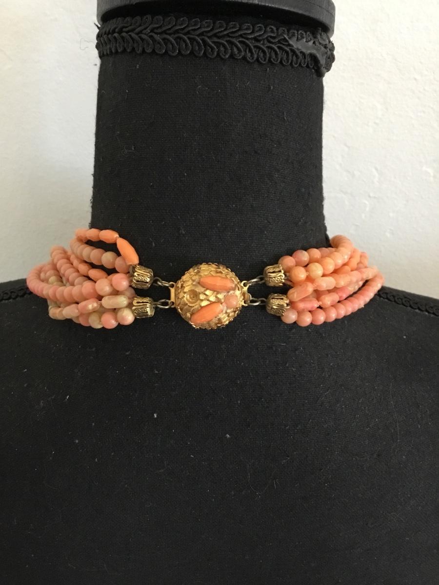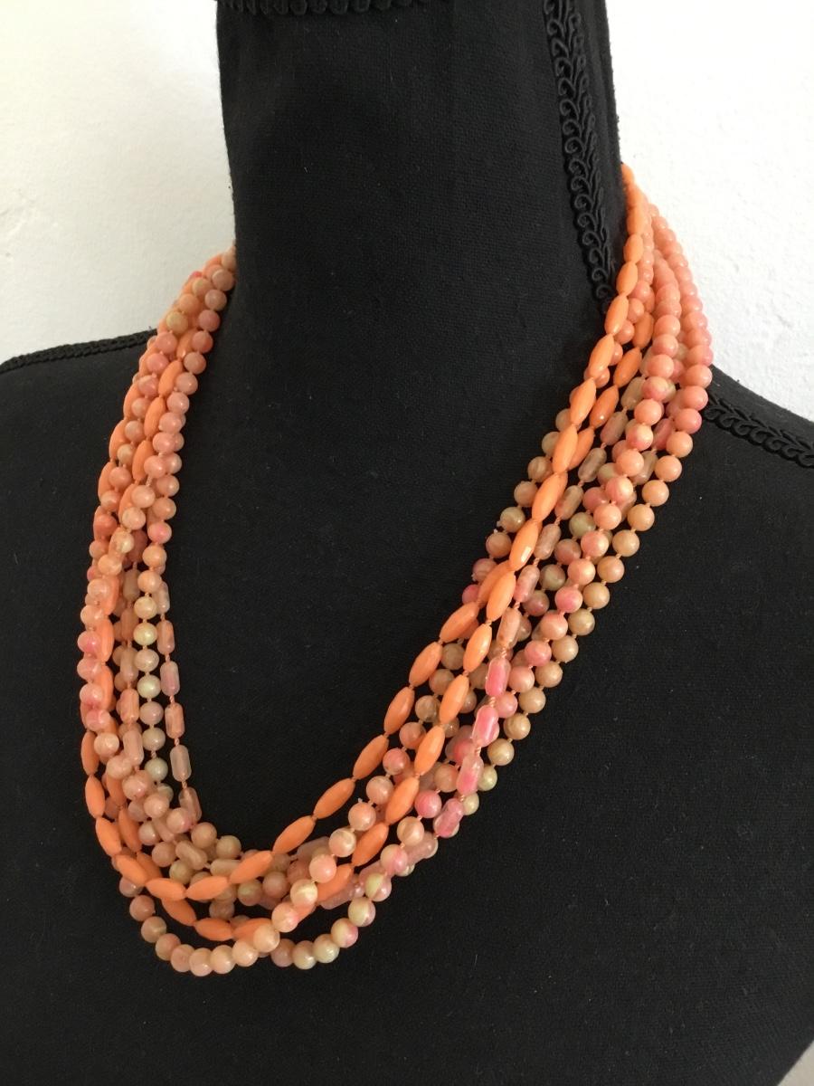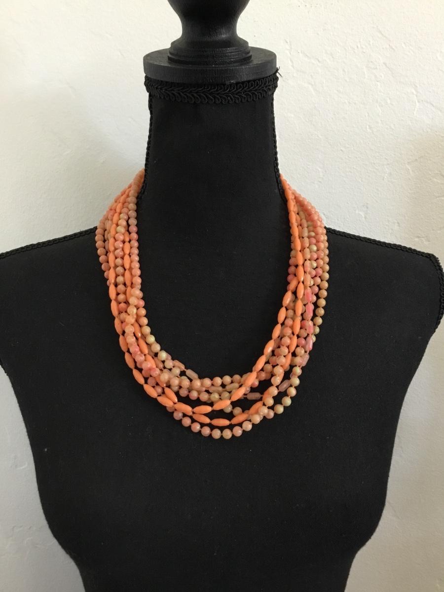 Vintage peach, Lucite type plastic multi strand statement, necklace