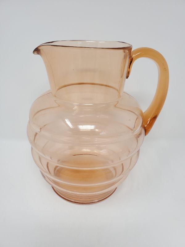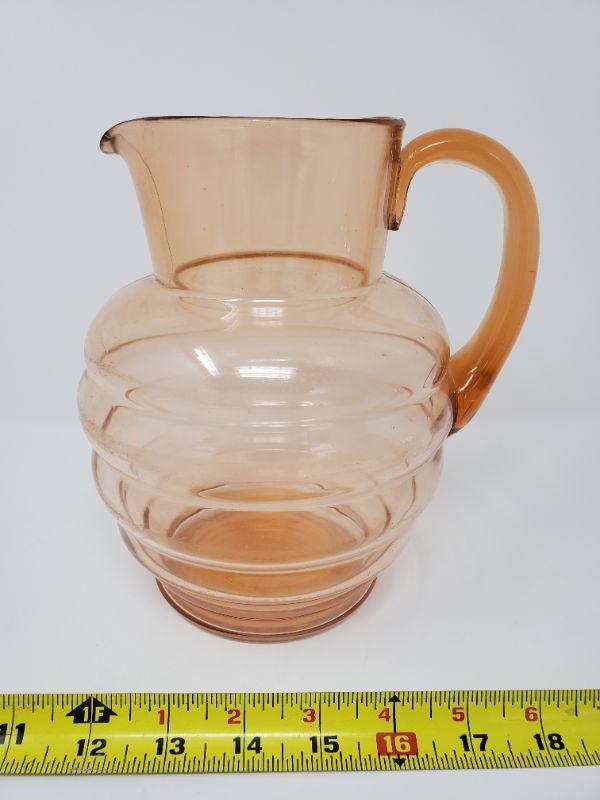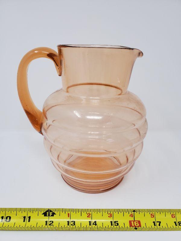 VINTAGE PEACH RIBBED GLASS PITCHER
