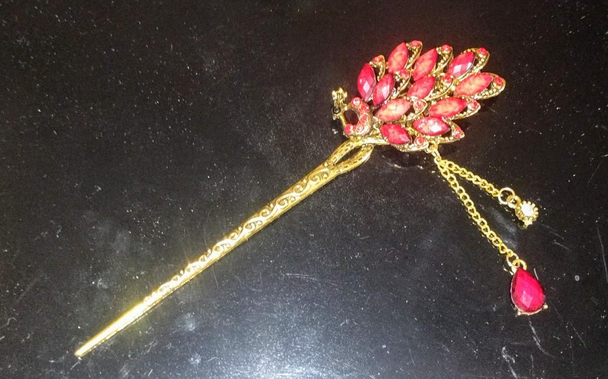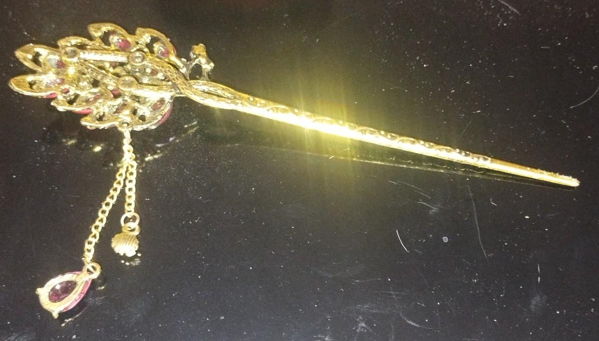 Vintage Peacock Metal Hair Pin, Bun Pin