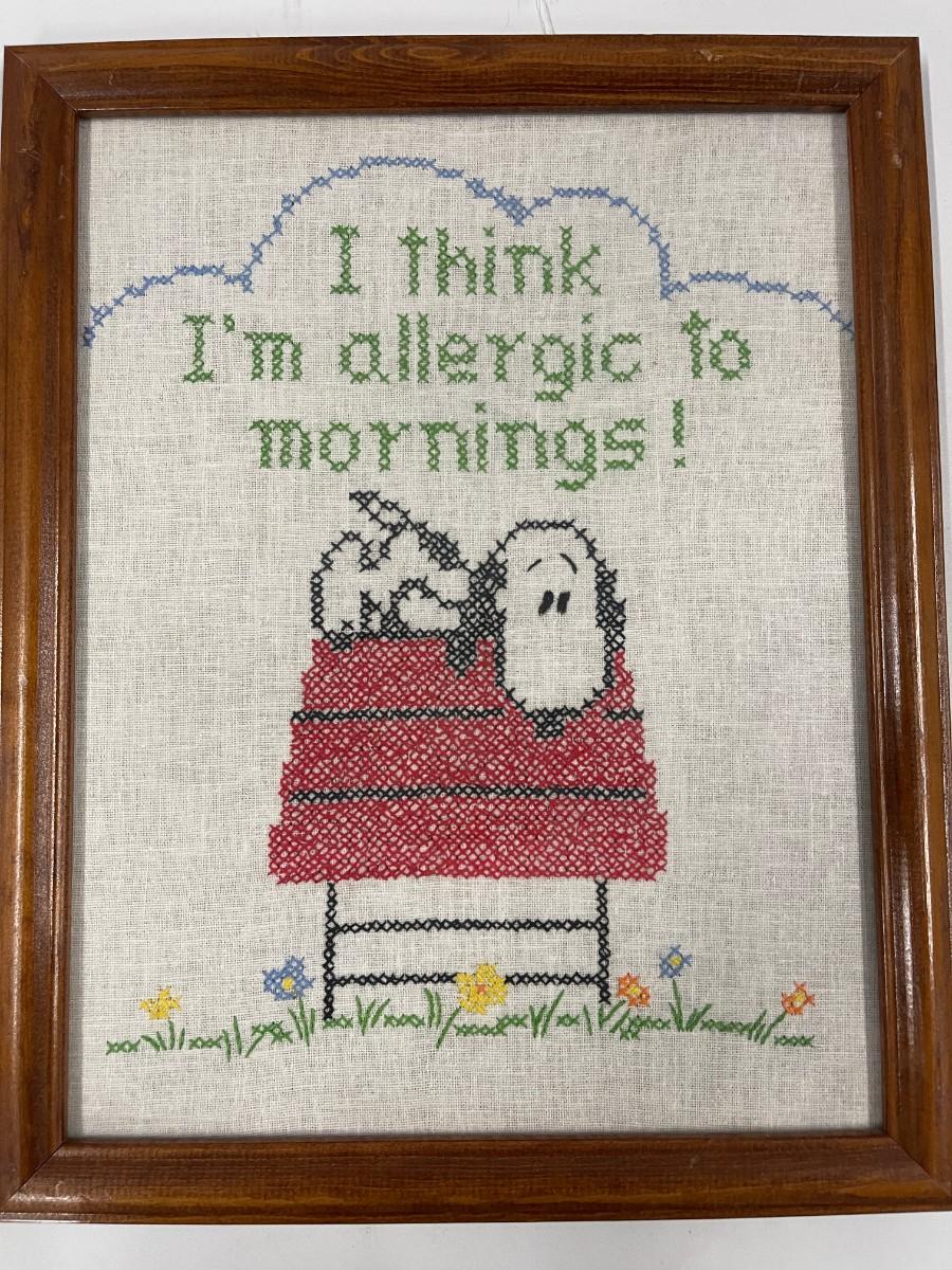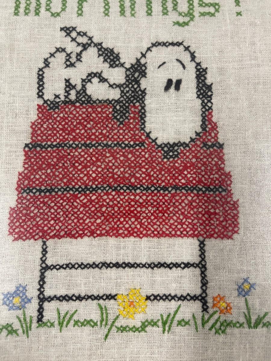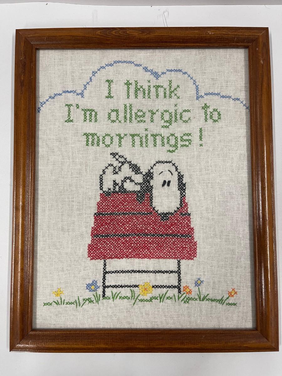 Peanuts Framed Cross Stitch. 12 1/2" x 15 1/2".