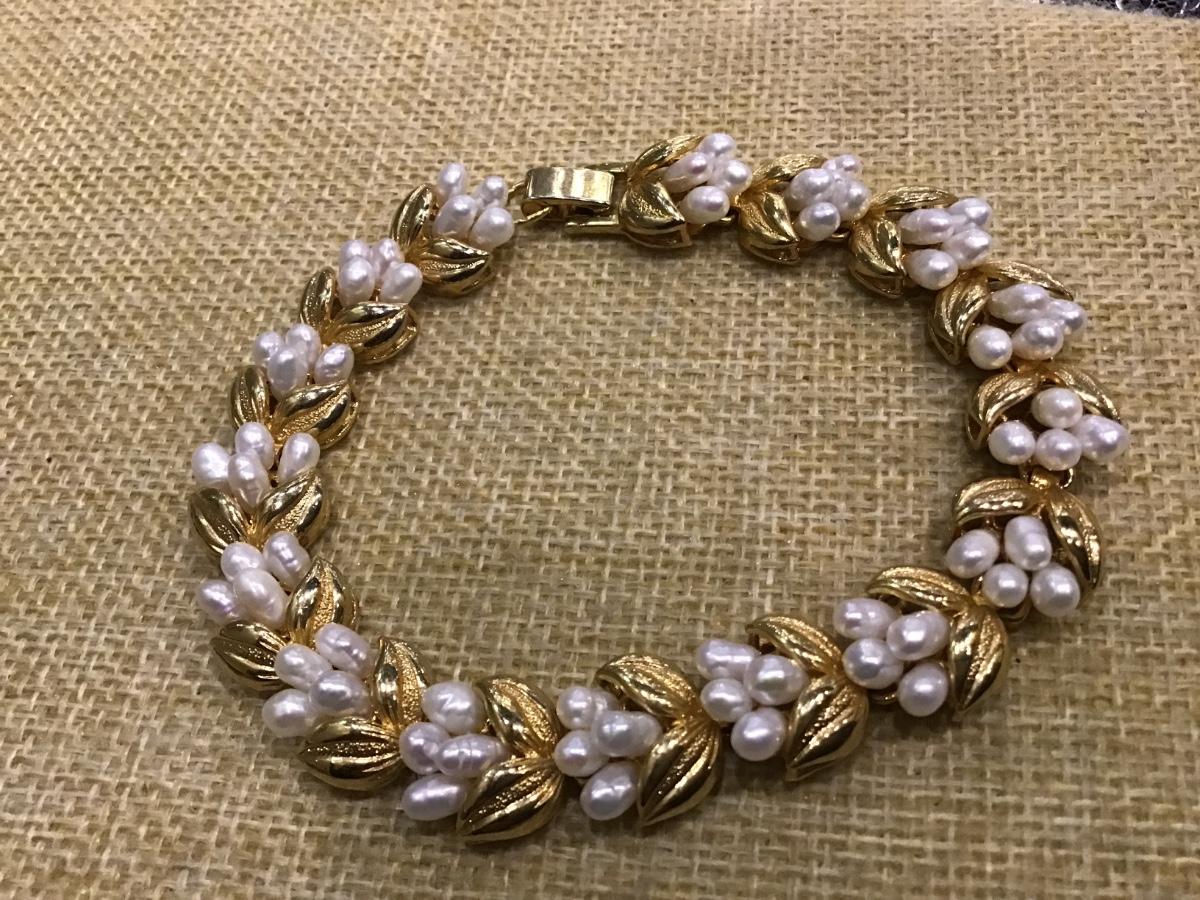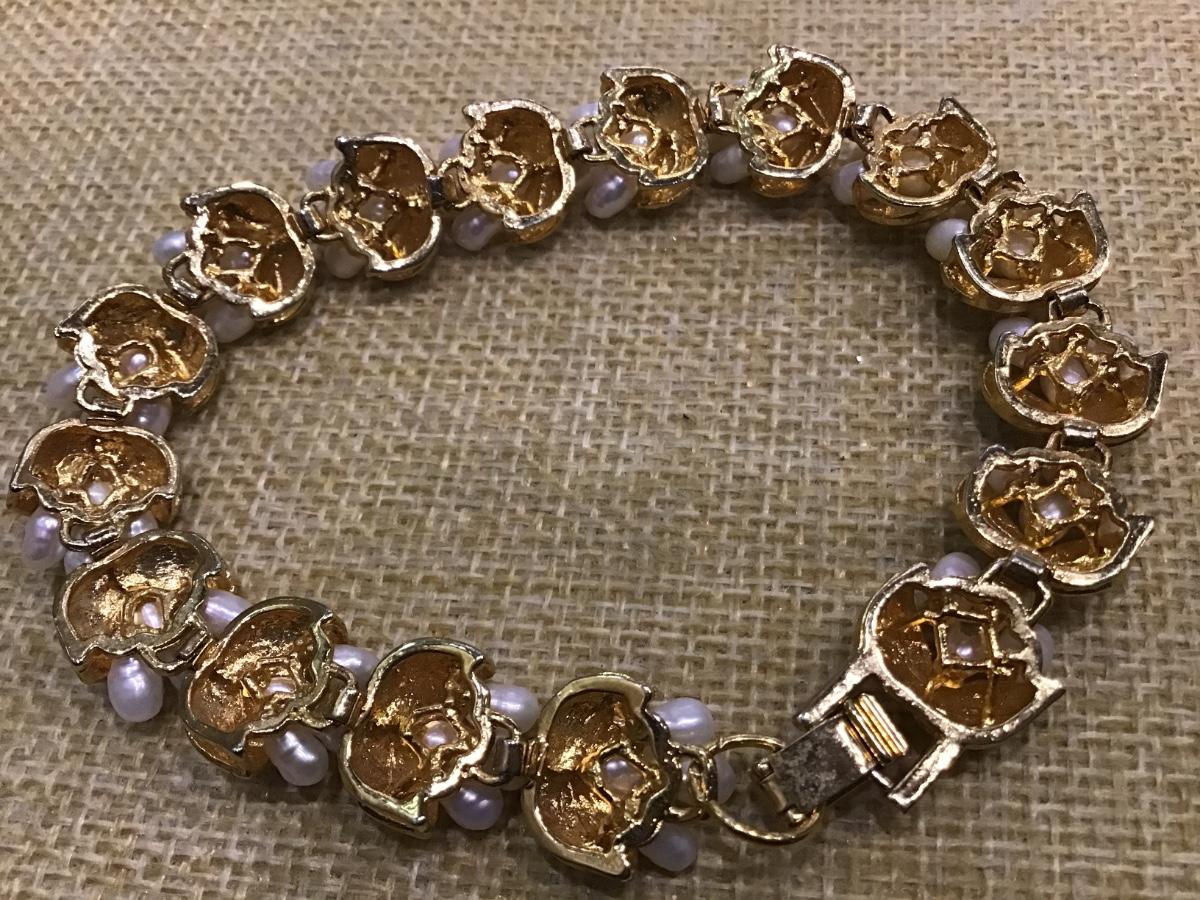 VINTAGE PEARL BRACELET GOLD TONE DELICATE INTRICATE