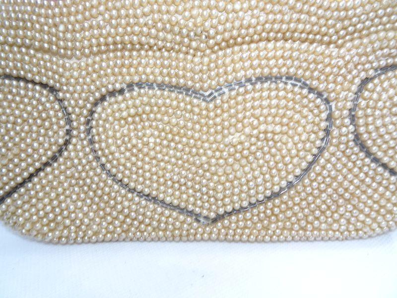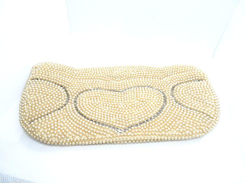 Vintage Pearl Clutch Hand Bag, Heart Design