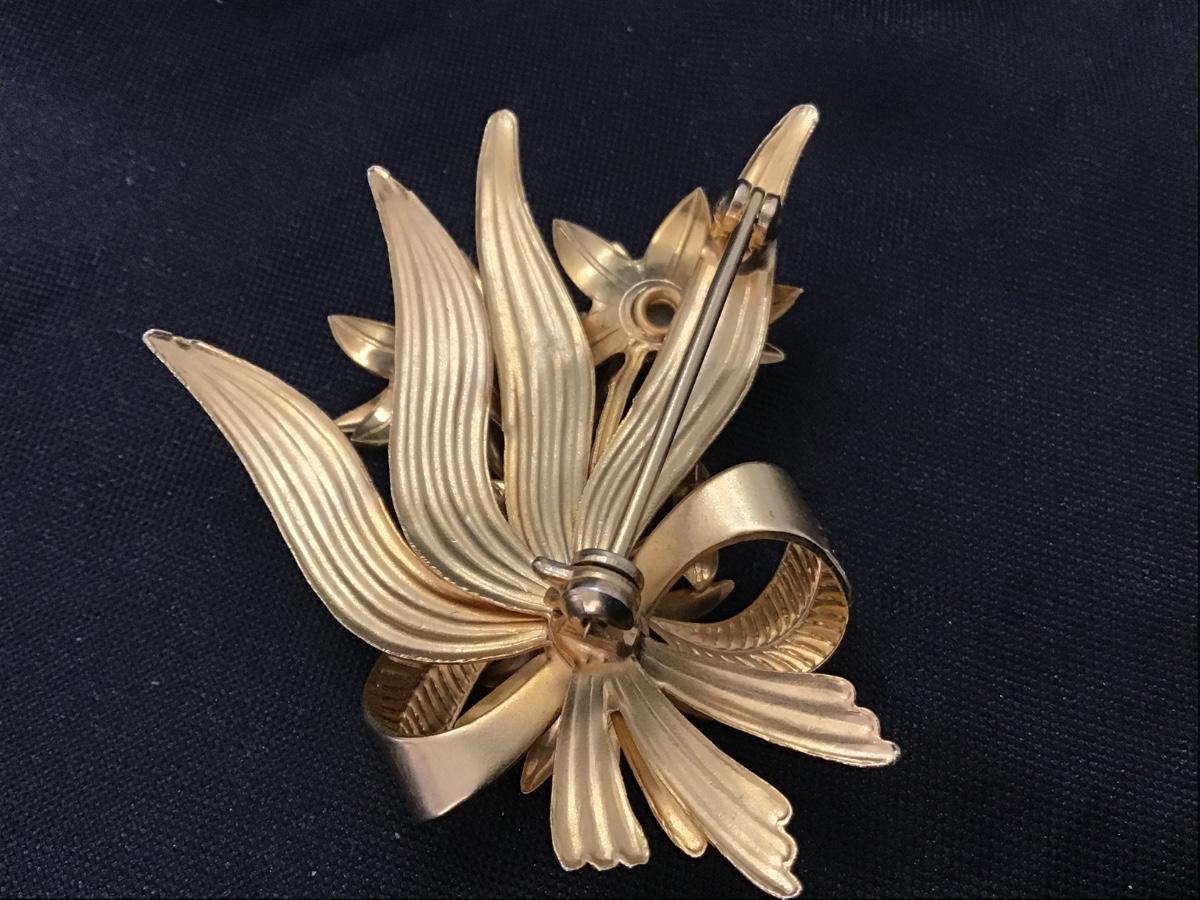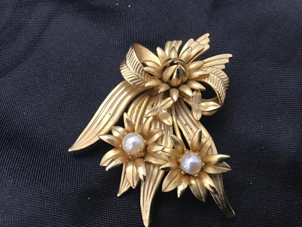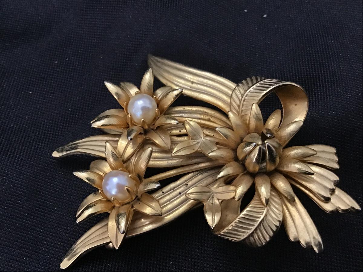 Vintage Pearl Flower Gold Tone Brooch