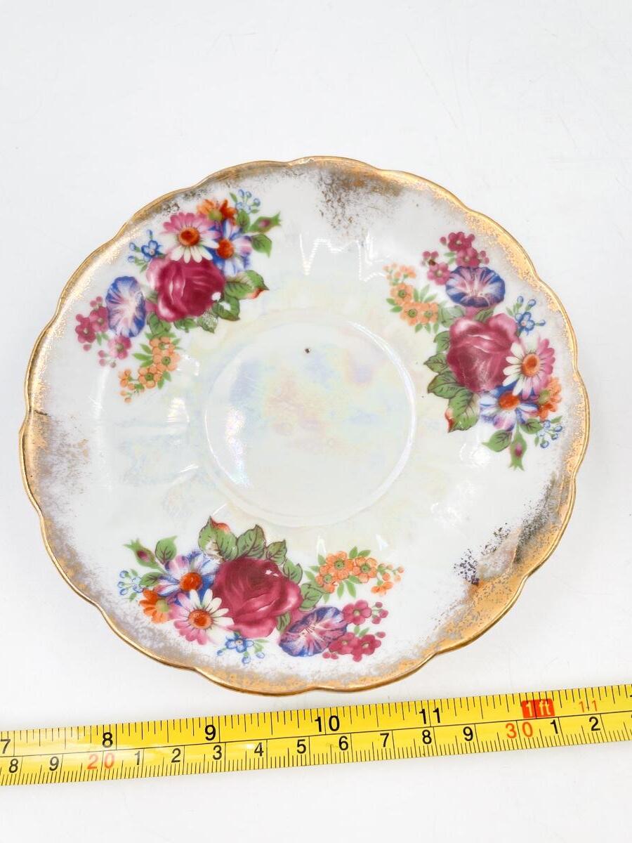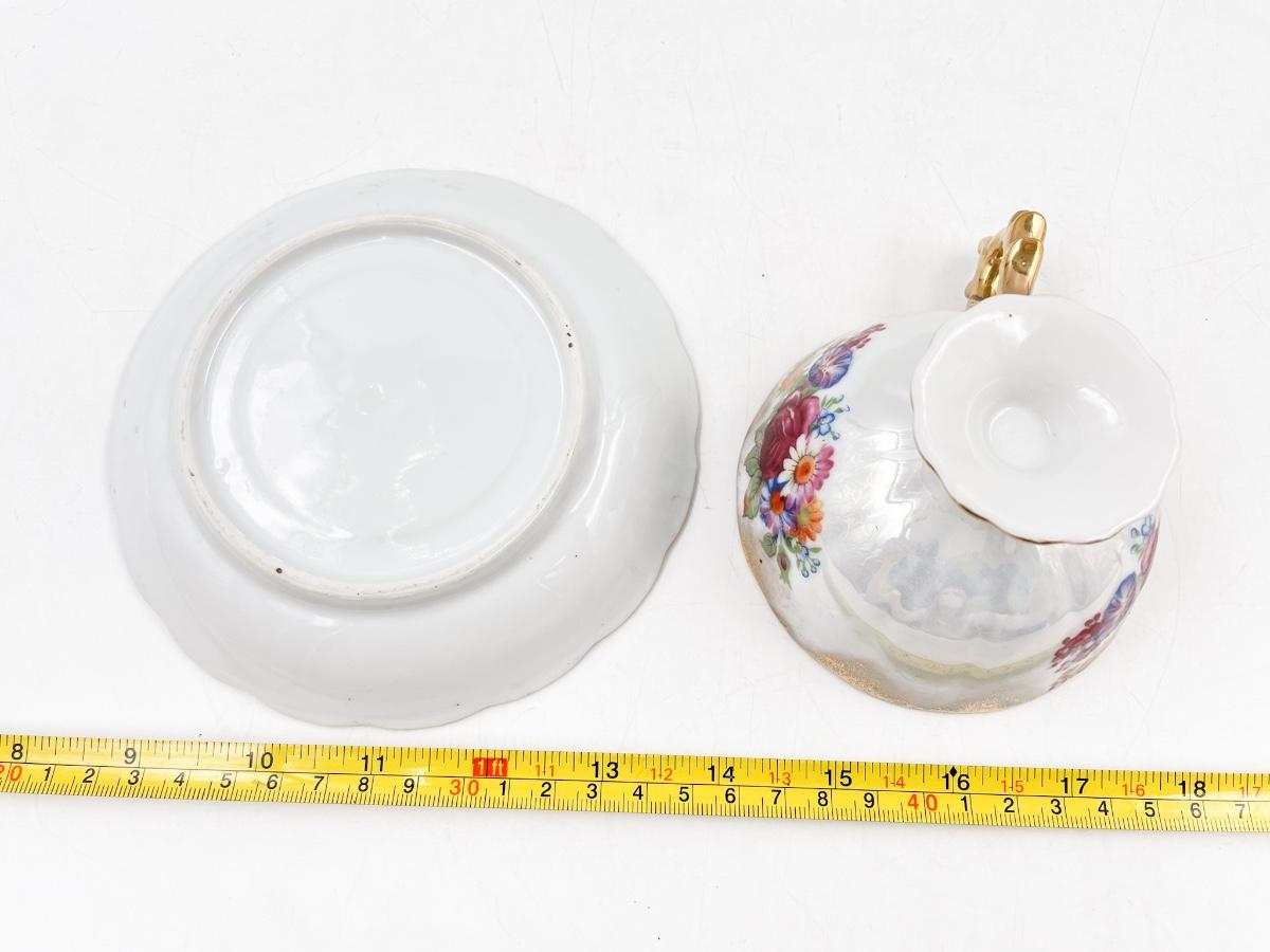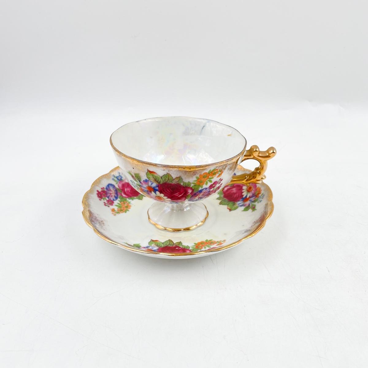 VINTAGE PEARLESCENT FLORAL TEACUP & SAUCER
