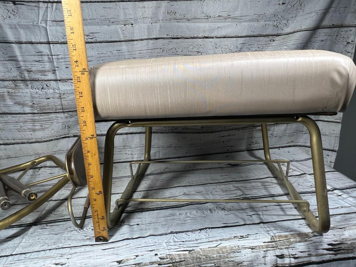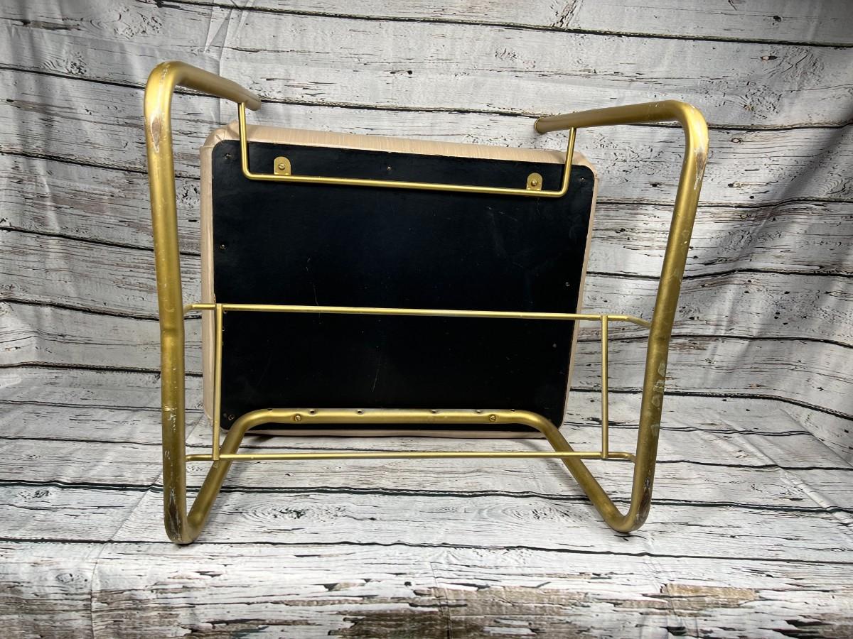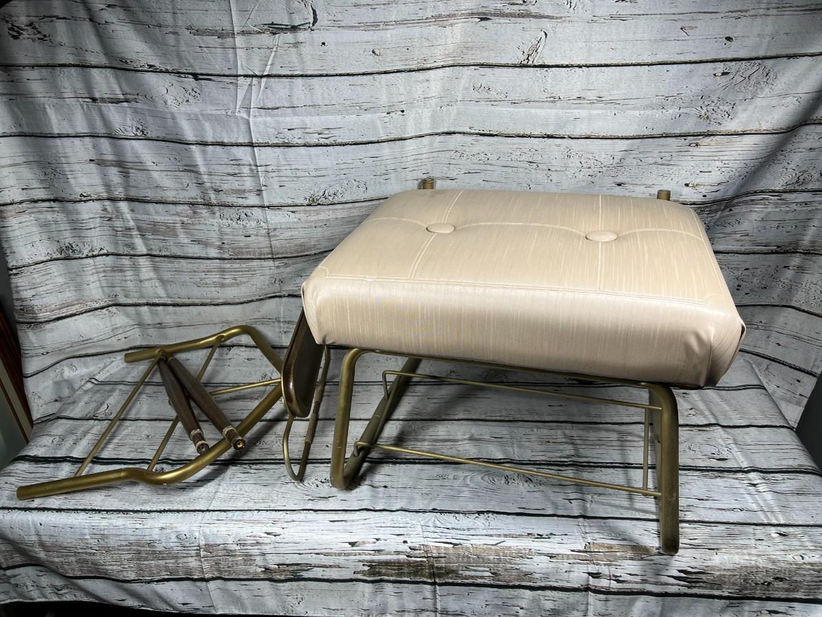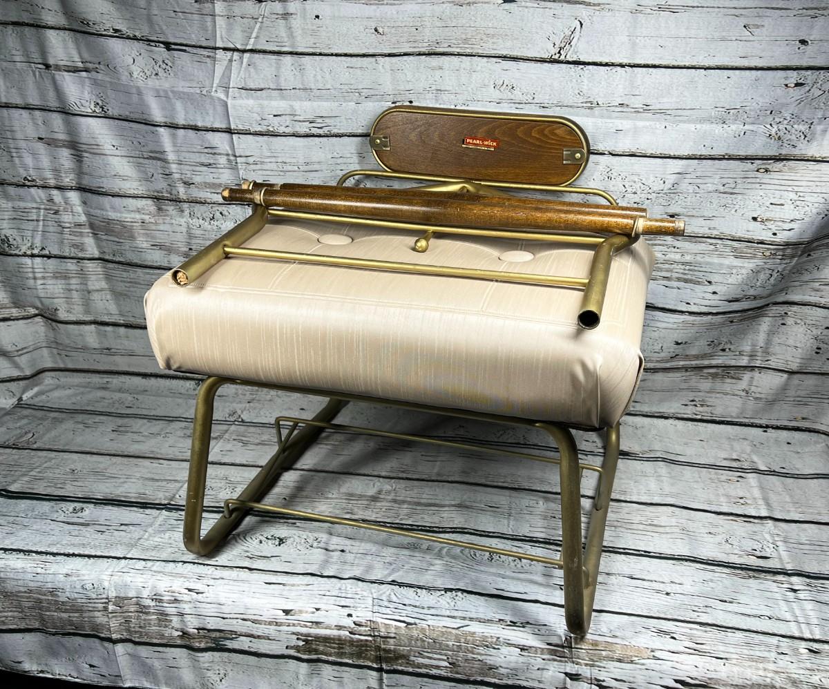 Vintage Pearlwick Gentlemens Butler seat. Has all the pieces, in good condition except one of the wood poles broke where it fits together. Possible repair or repurpose or parts for one in not as good condition. Light colored seat cushion. See photos.