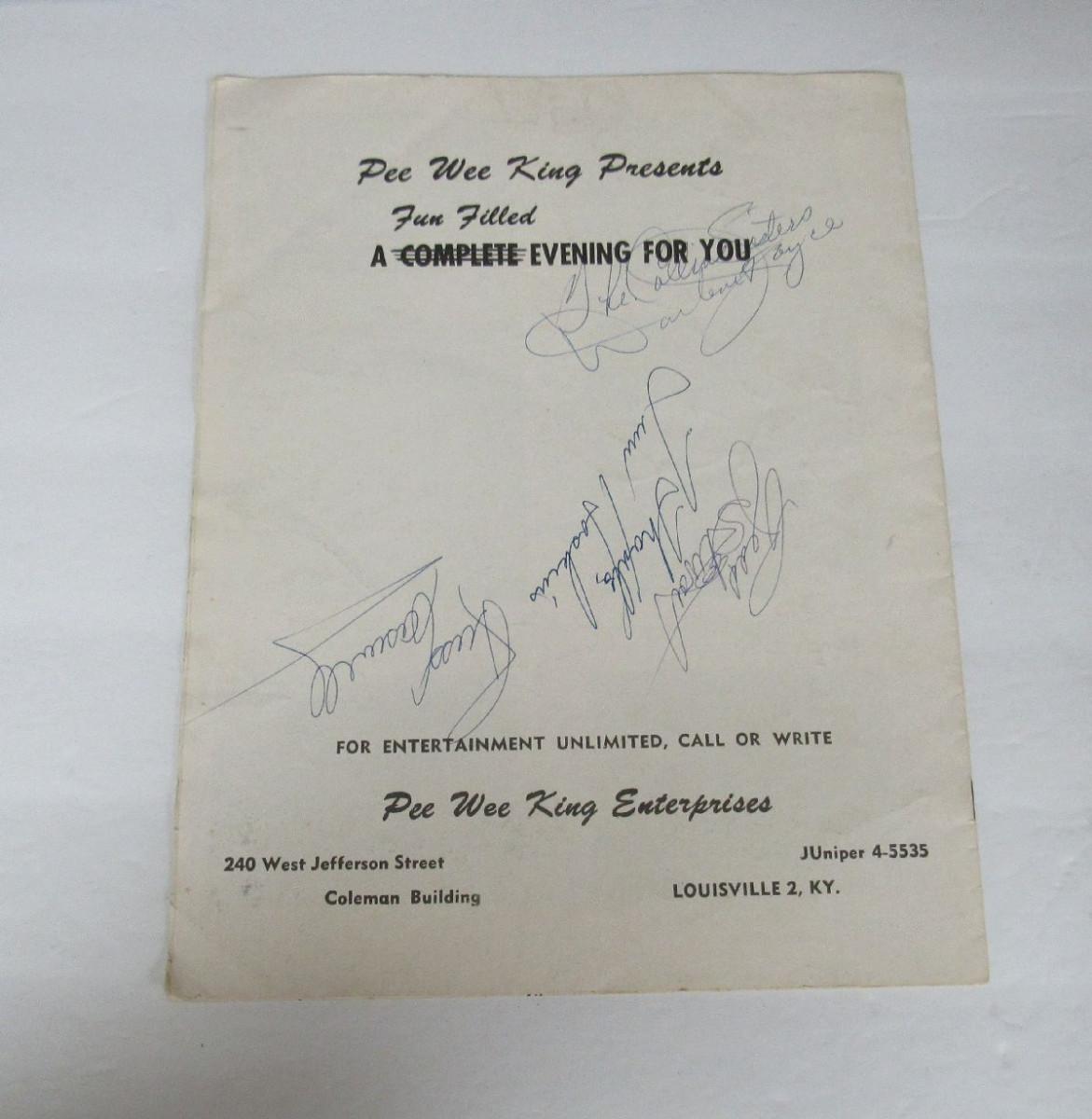 Vintage Pee Wee King Autographed Program With Additional Autographs on Back