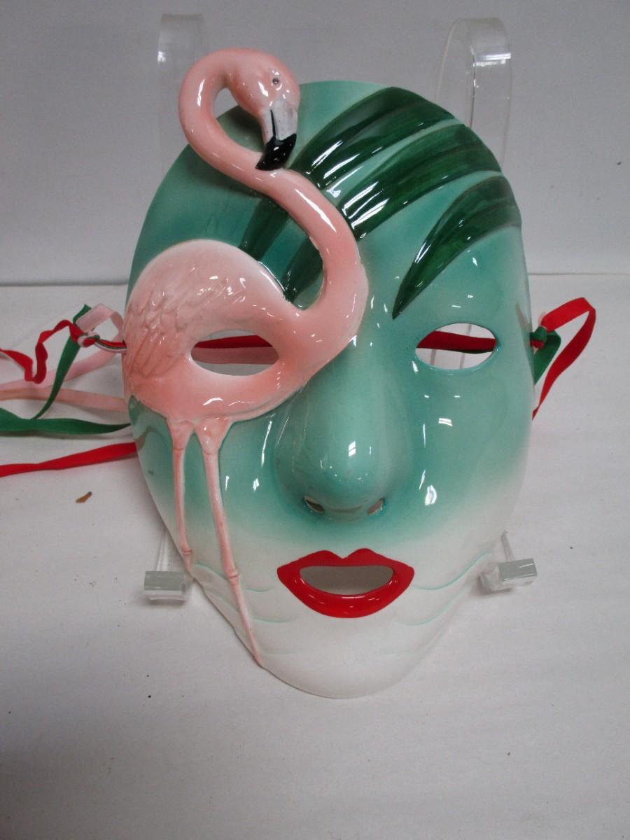 Vintage Pelzman Designs - 1985 Vandor Ceramic Mask Japan - Pink Flamingo