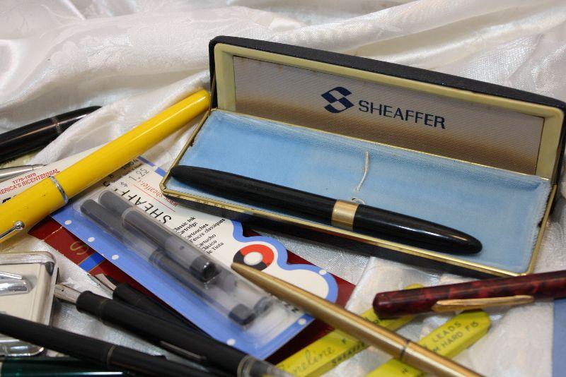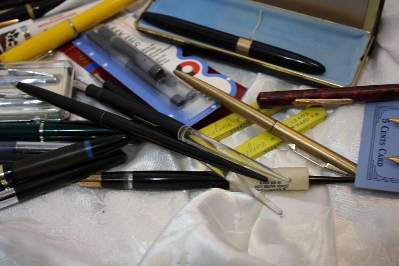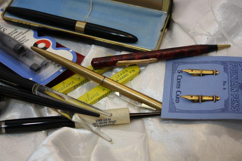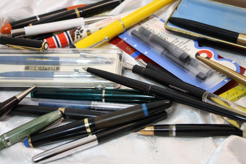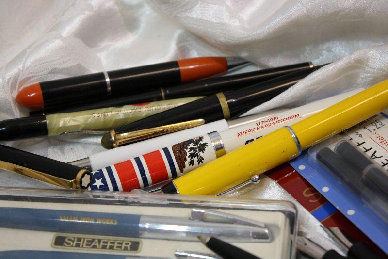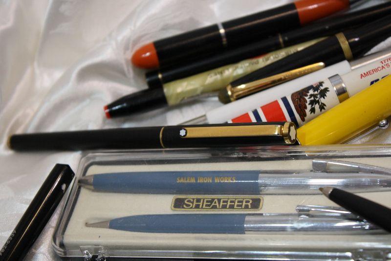 Vintage pen lot, Sheaffer, Estebrook, MontBlanc, advertising, 14k nib