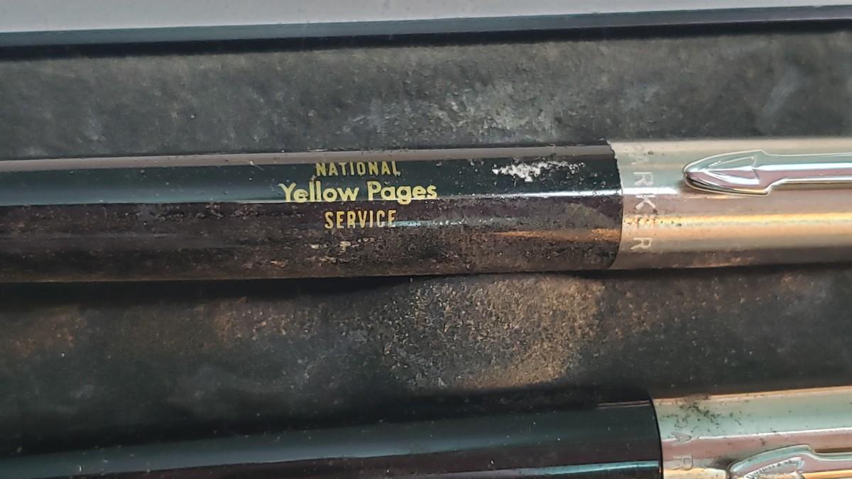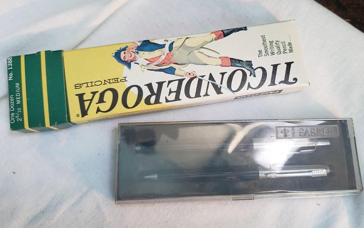 Vintage Ticonderoga pencils and Parker pen set advertising National yellow pages service