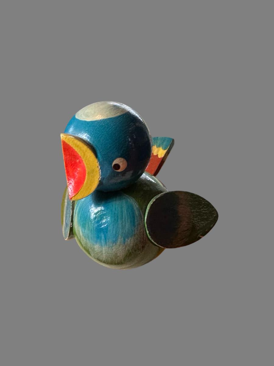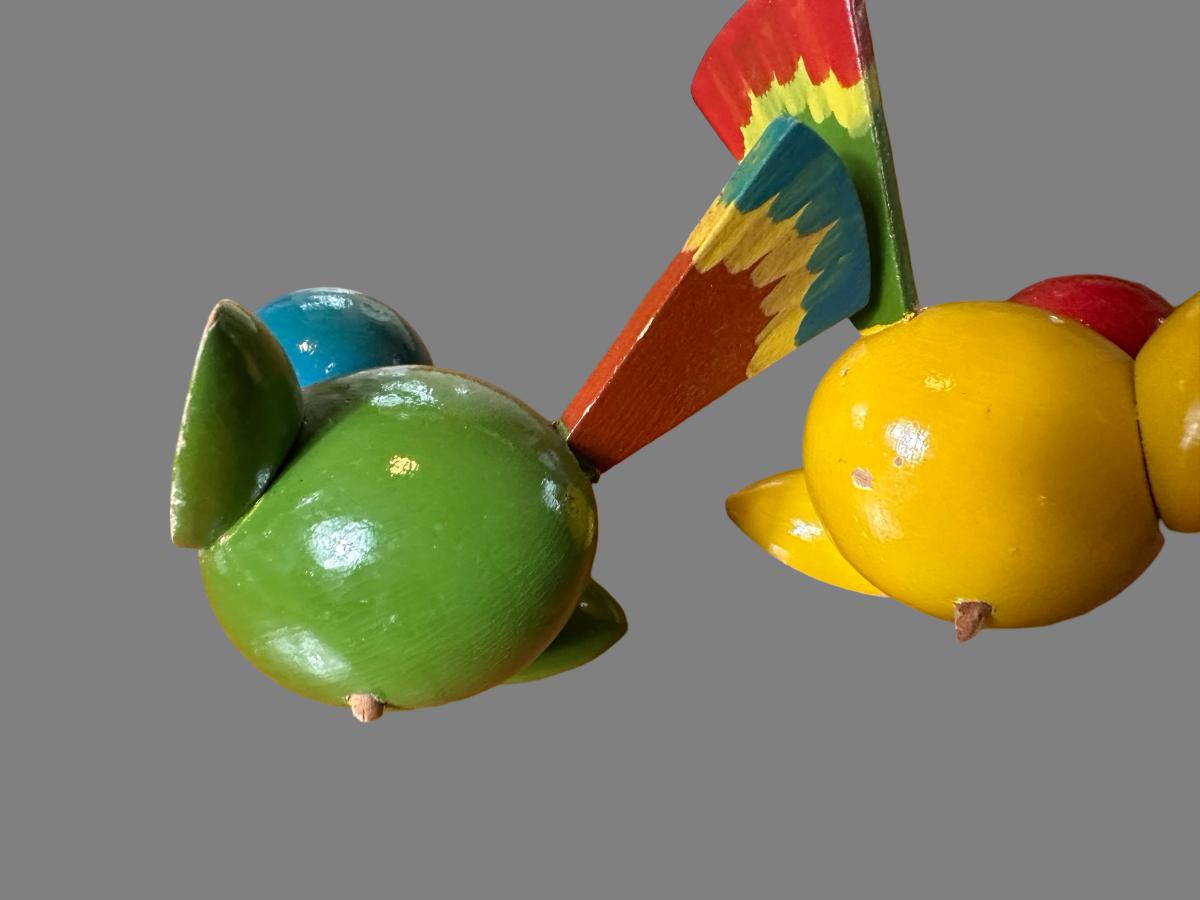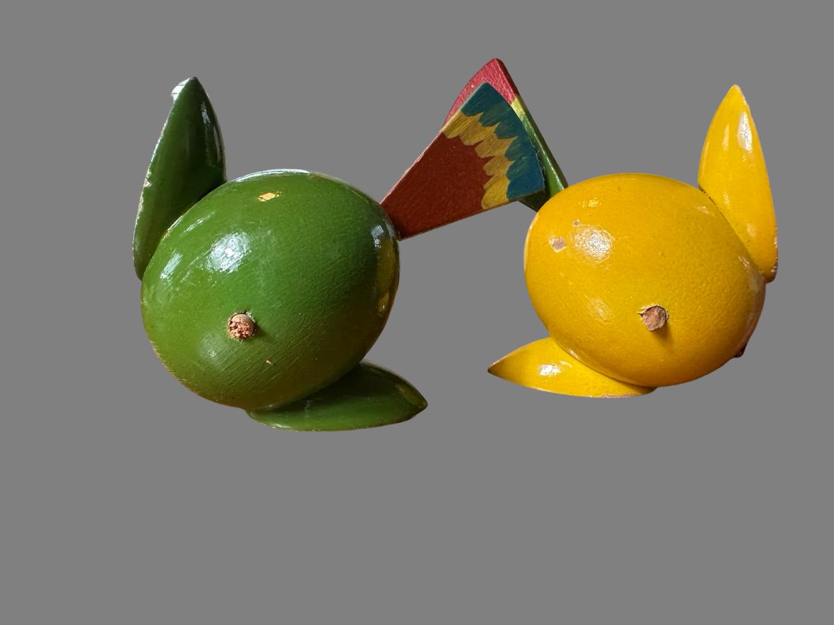 Lamp plugs in and works, does not have a switch for it. The birds are broken off with the wood still remaining inside the base. See pictures to see where they were once attached.