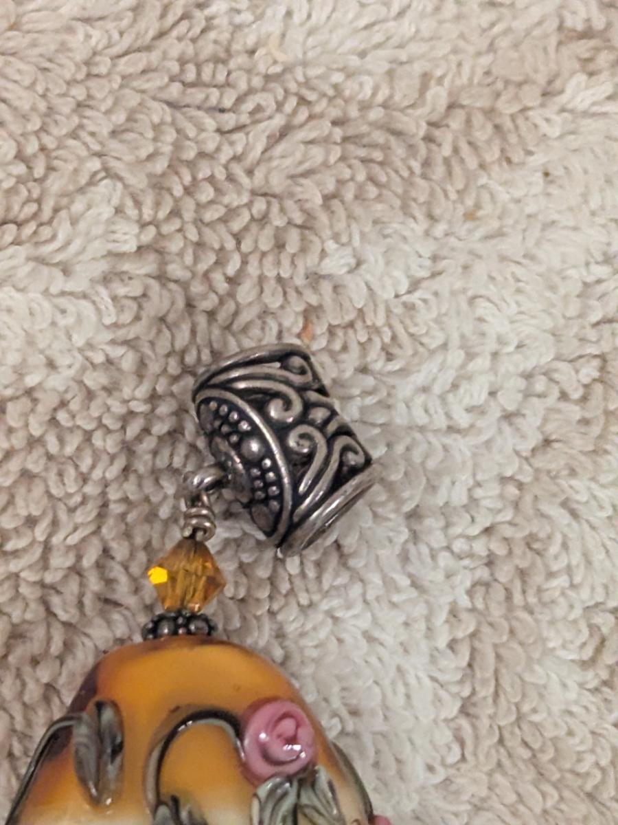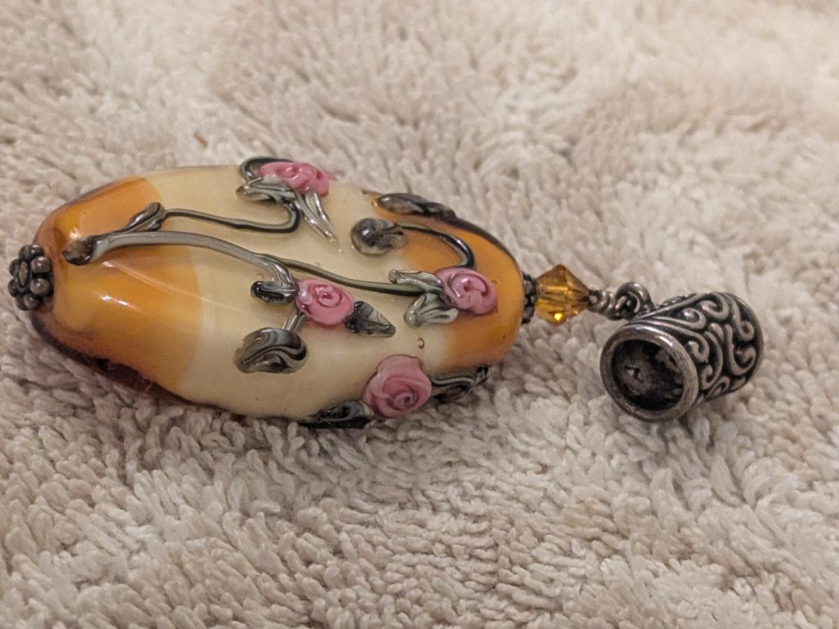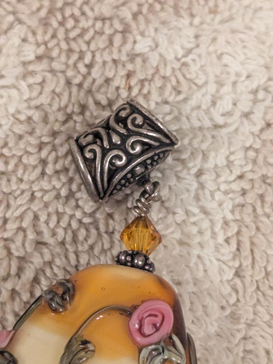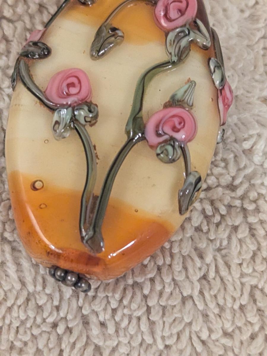 vintage pendant with oval stone and pink rose embellishments