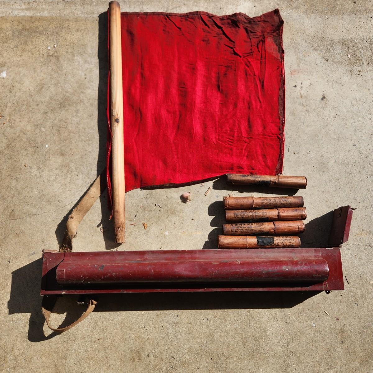 Vintage Pennsylvania RR Railroad Metal Flagman Signal Carrying Kit includes Flag and Flares