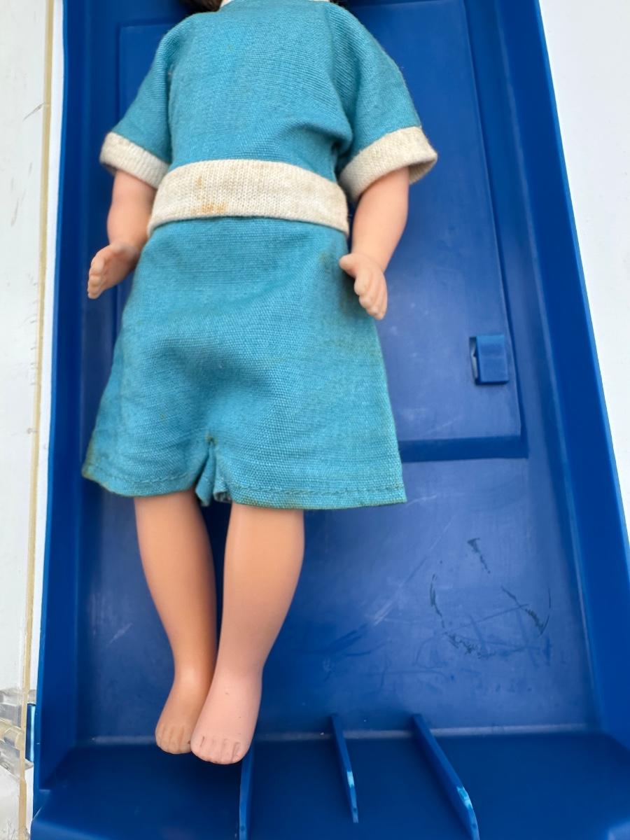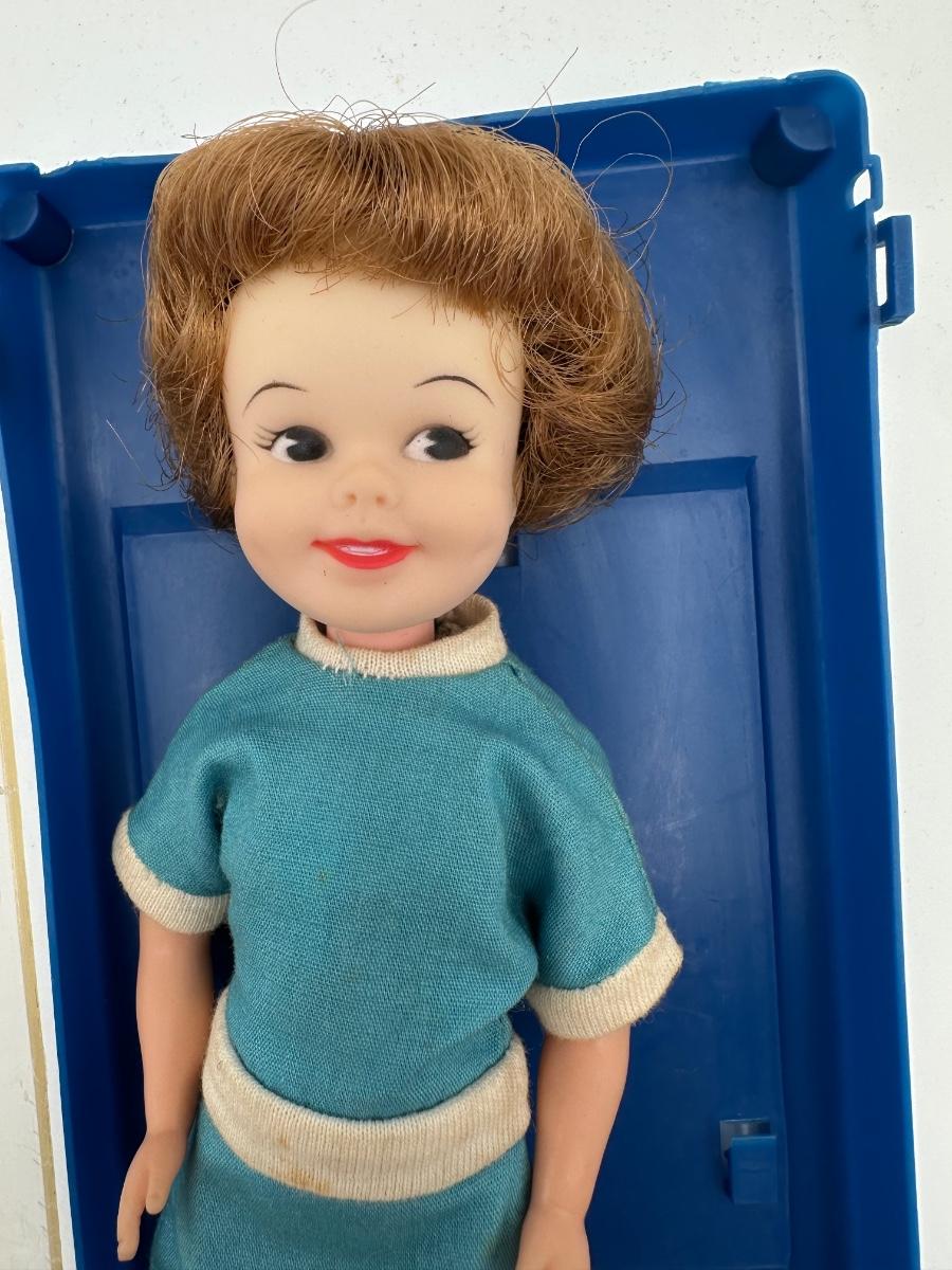 Doll with plastic case.