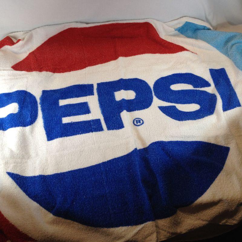 This is a well-kept vintage Pepsi-Cola Beach Towel - from the early 50's. It measures 32-inches wide X 60-inches long. It has a few minor snags, but overall is in very good condition for it's age. Clean and ready for you, Tommy Sands and/or Annette Funicello to lounge on the beach.