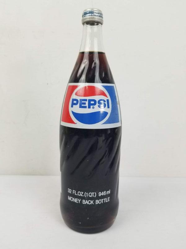 Vintage Pepsi-Cola, Glass Bottle, Metal Cap, 32oz, Sealed