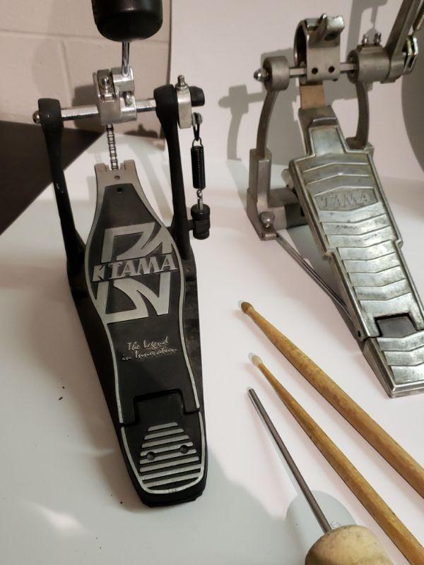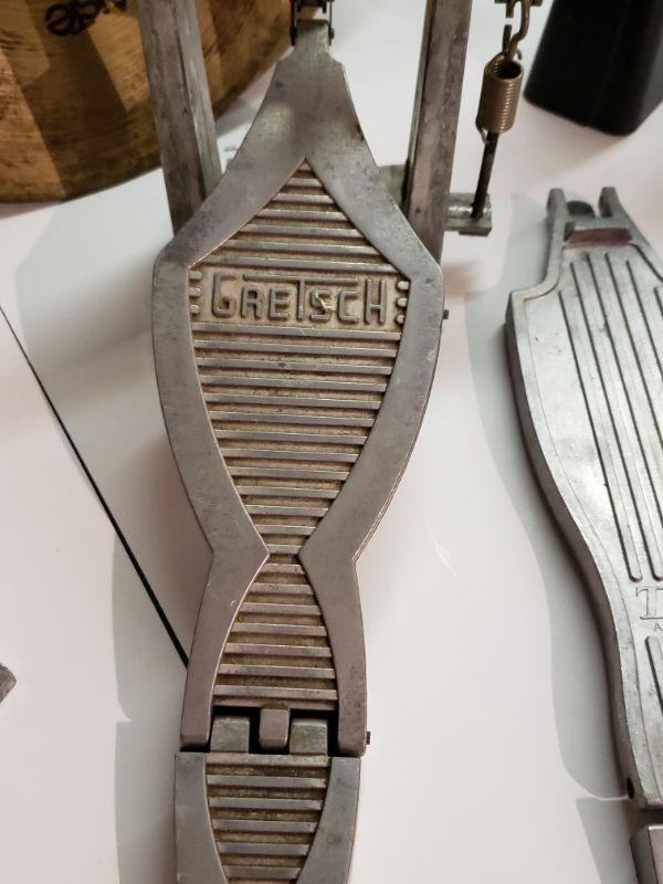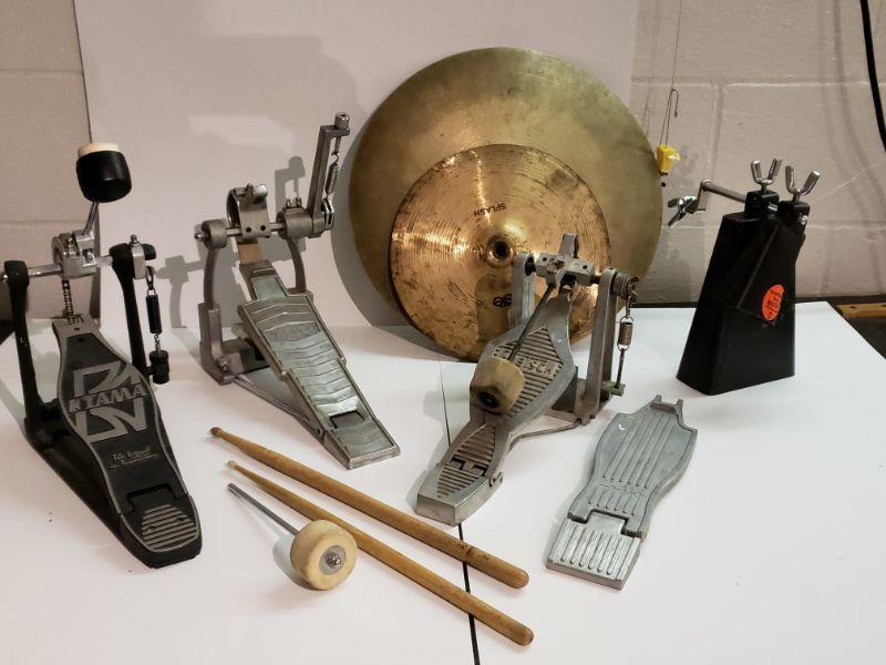 Vintage Percussion Lot #1. (some extra items added. not photographed). Tama, Gretsch, Paiste. Unclear as to the working condition. Some items may only be good for parts or repair. I believe that one of the cymbals has a crack in it. Sold as parts, repair or art. Lot #0055