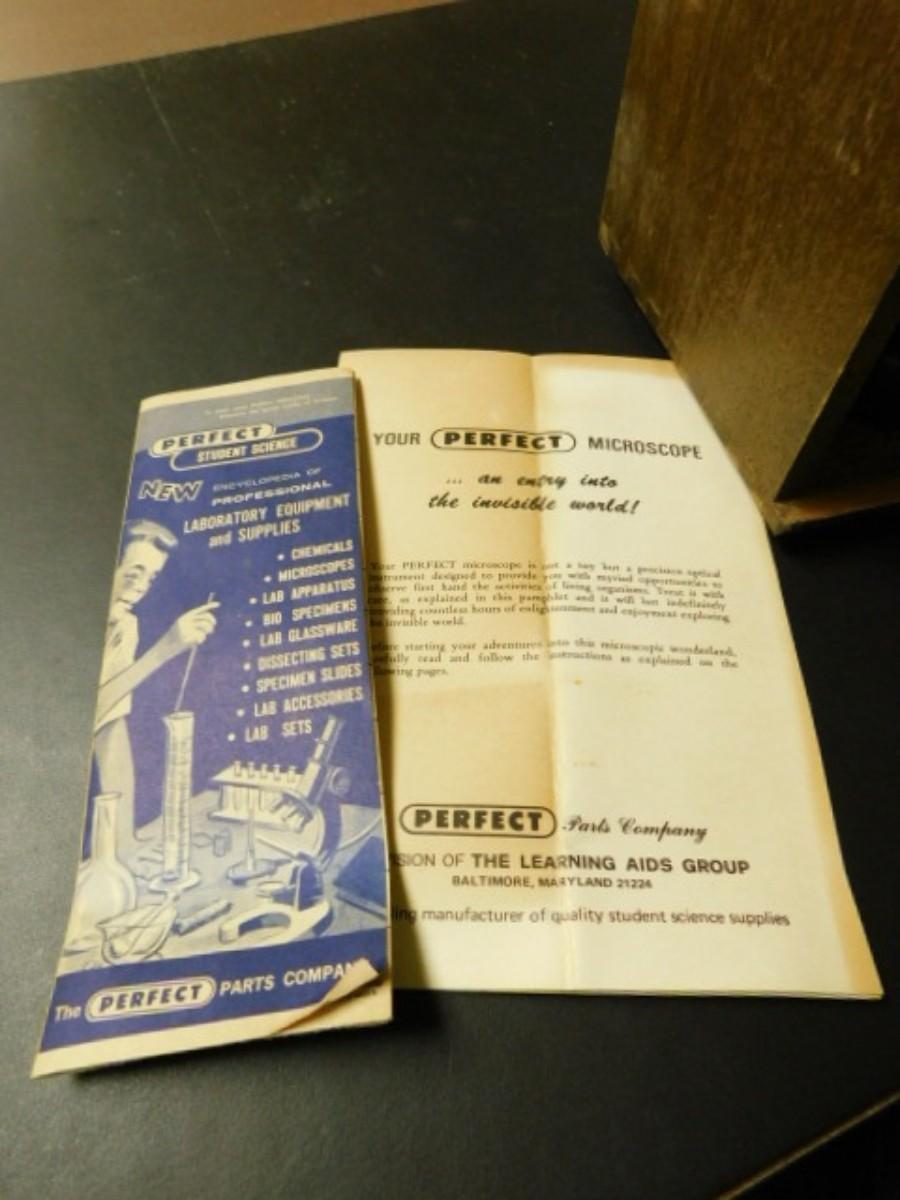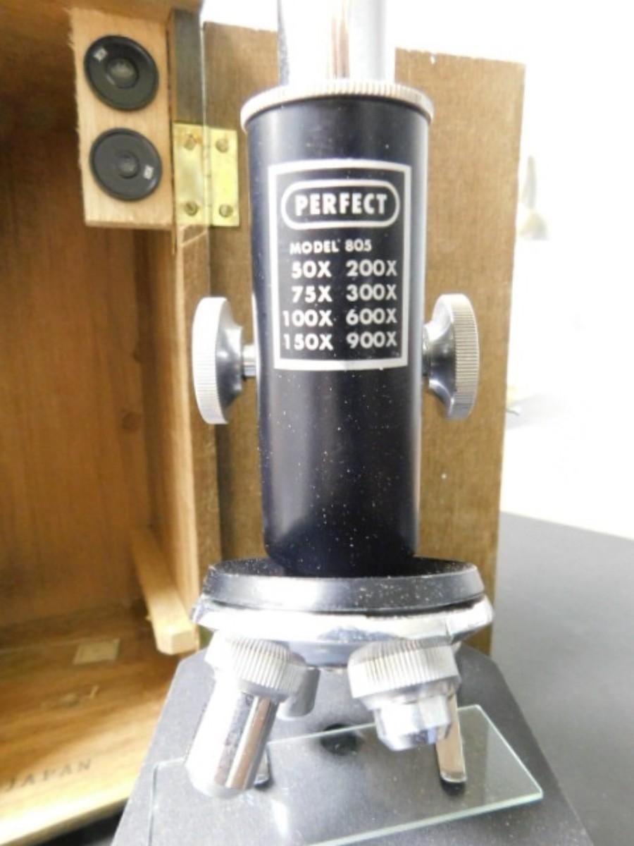 Vintage Perfect Brand Microscope with Original Wood Box Model 805