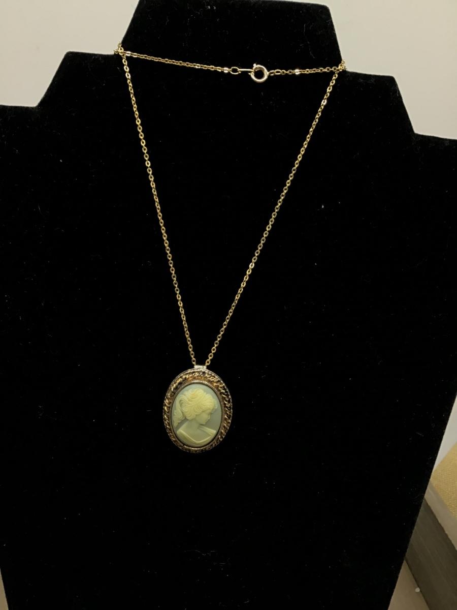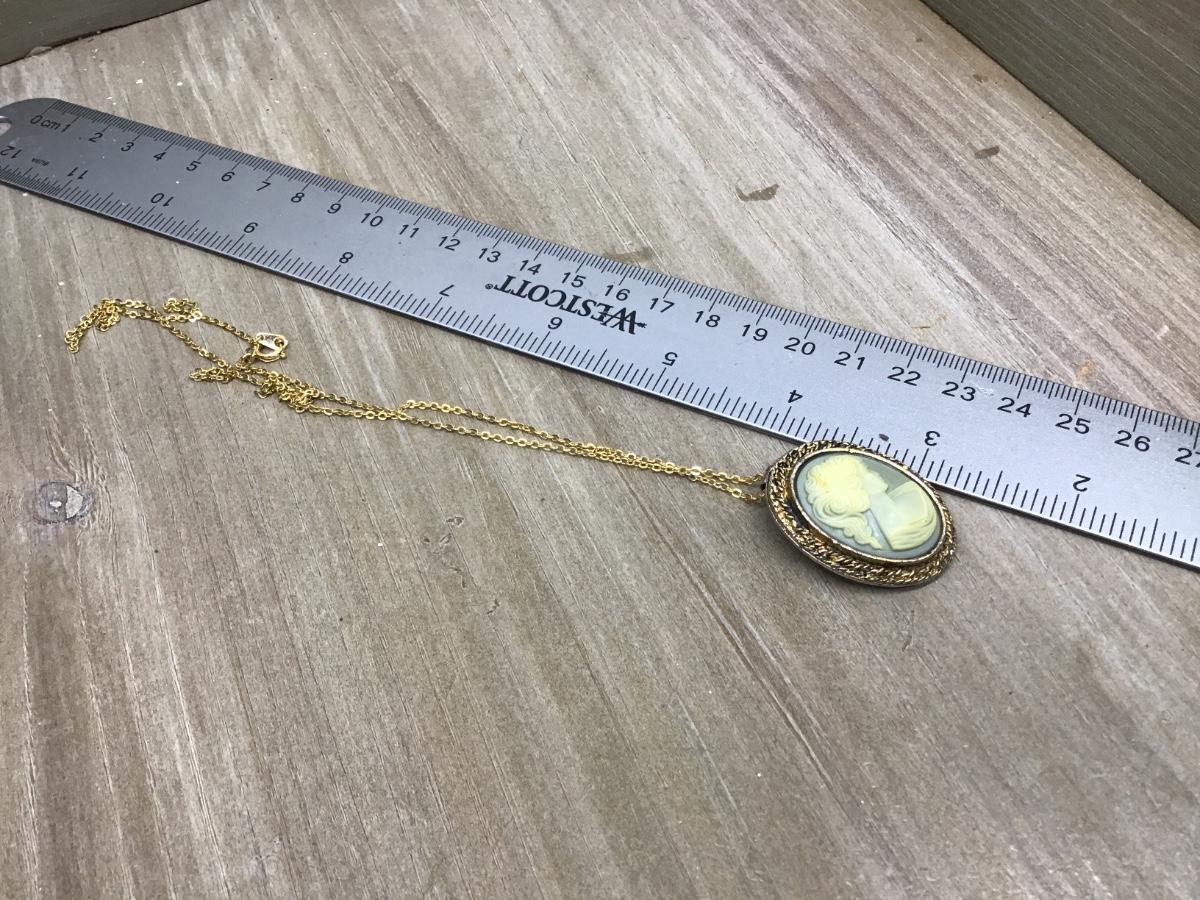 VINTAGE PERI GOLD TONE CAMEO BROOCH PENDANT Blue