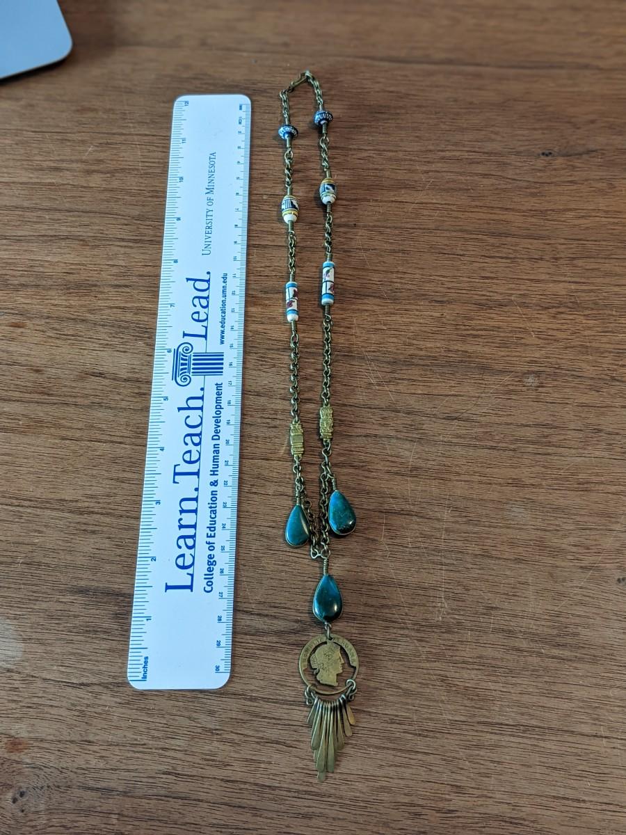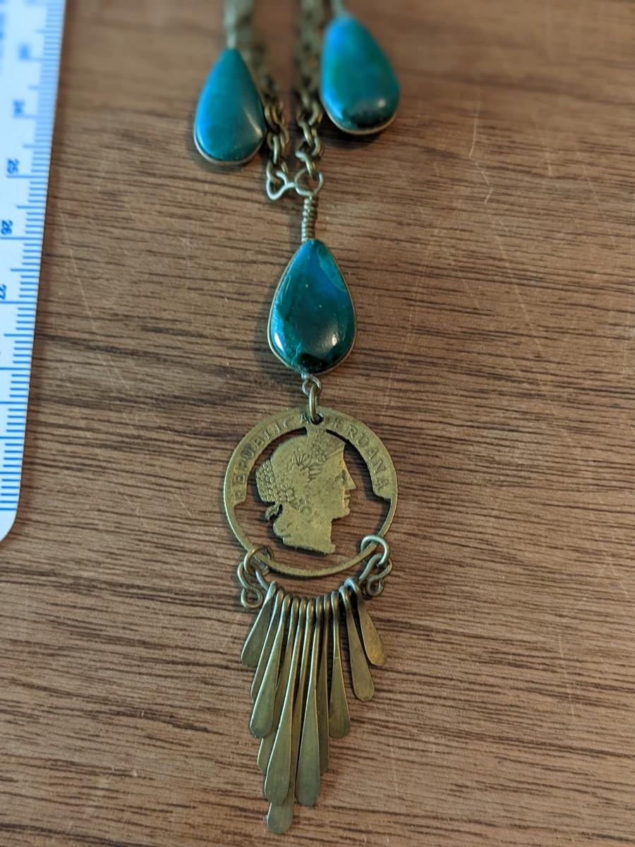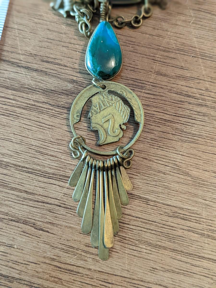 Vintage Peruvian Coin, Blue Apatite Stone Necklace