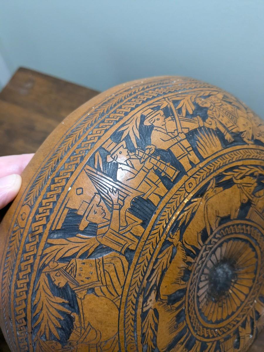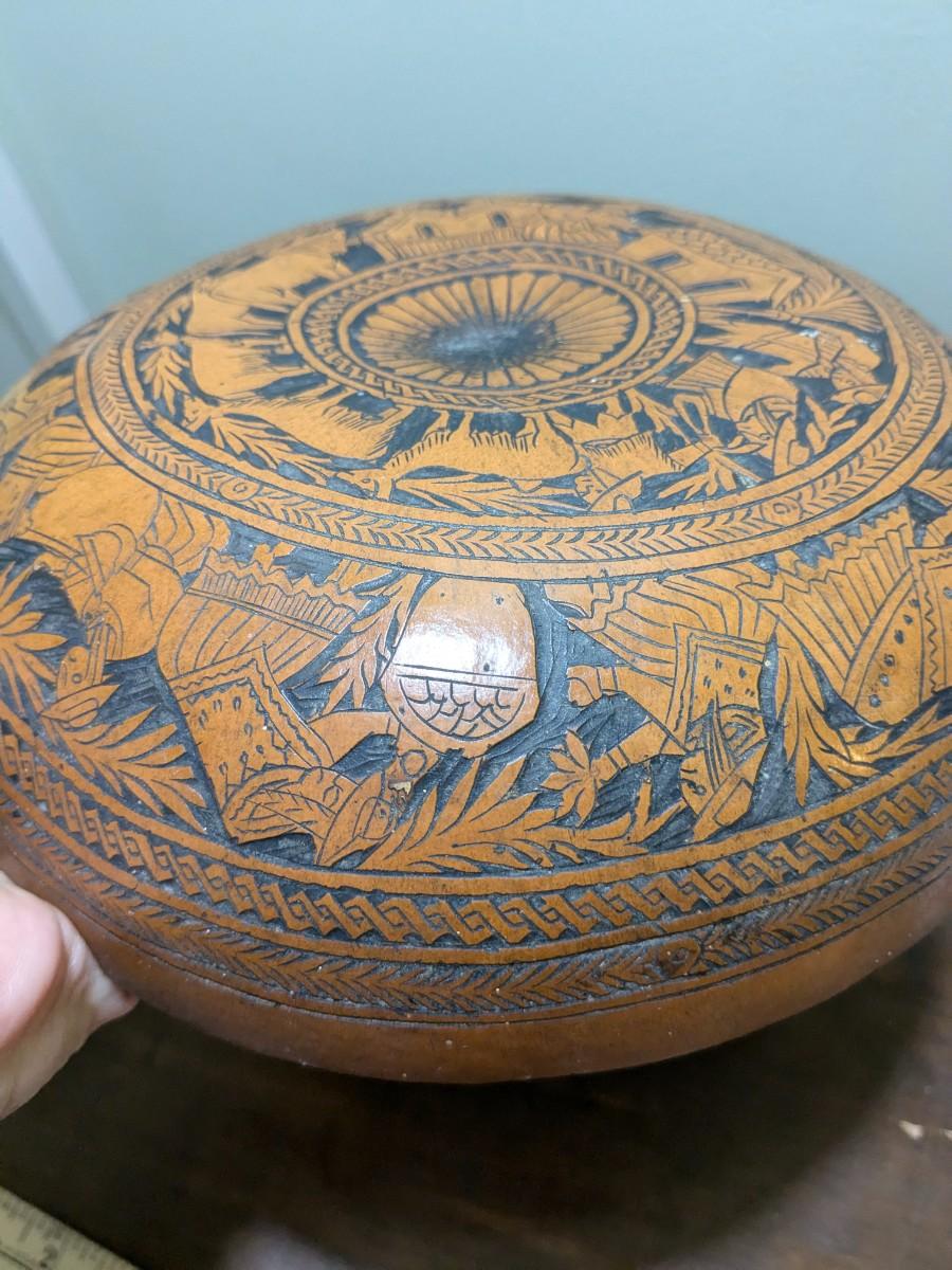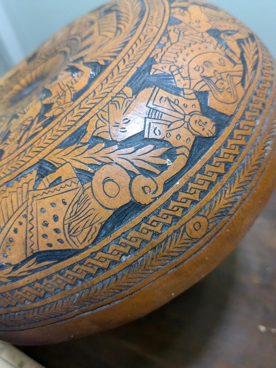 Vintage Peruvian Hand Carved Gourd Bowl