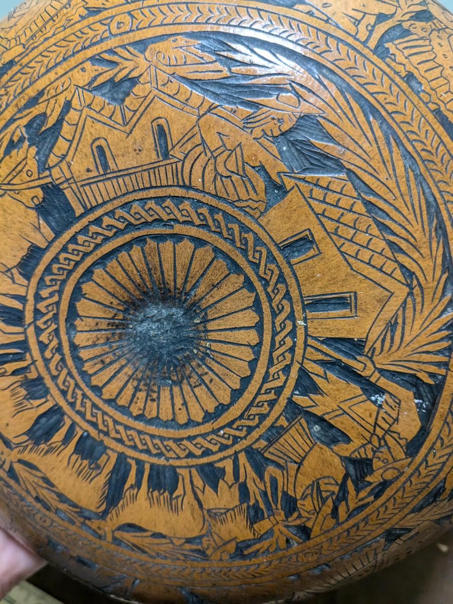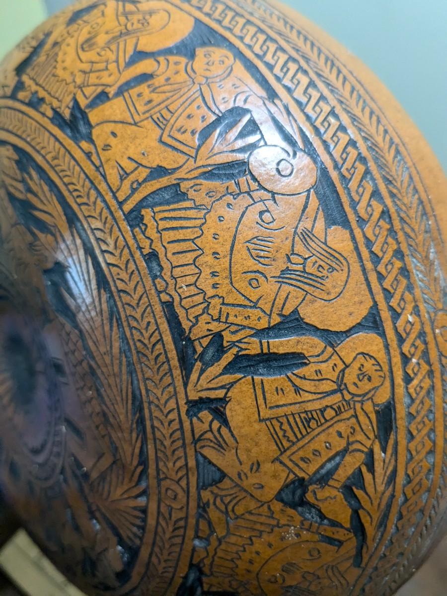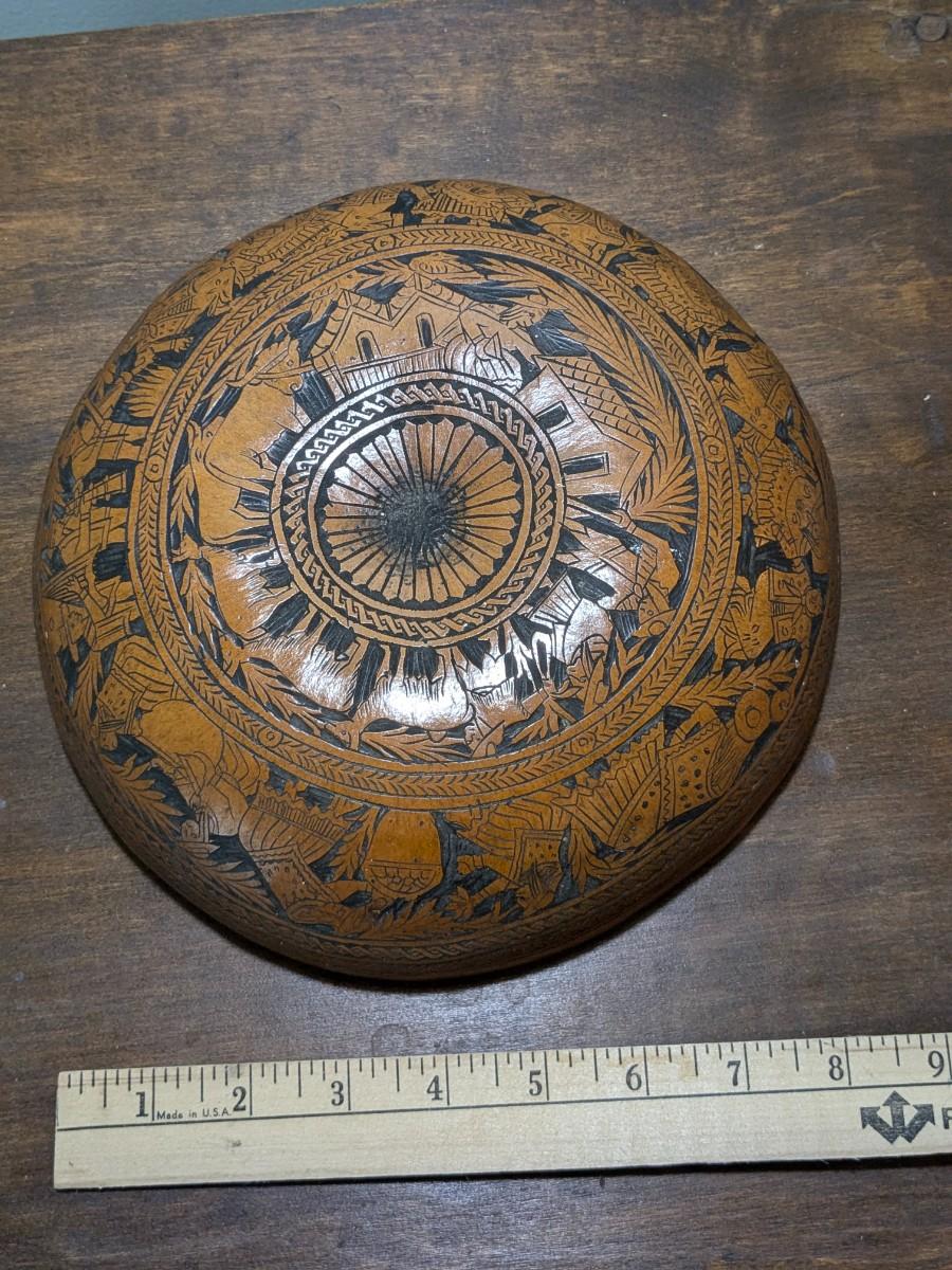 Vintage Peruvian Hand Carved Gourd Bowl