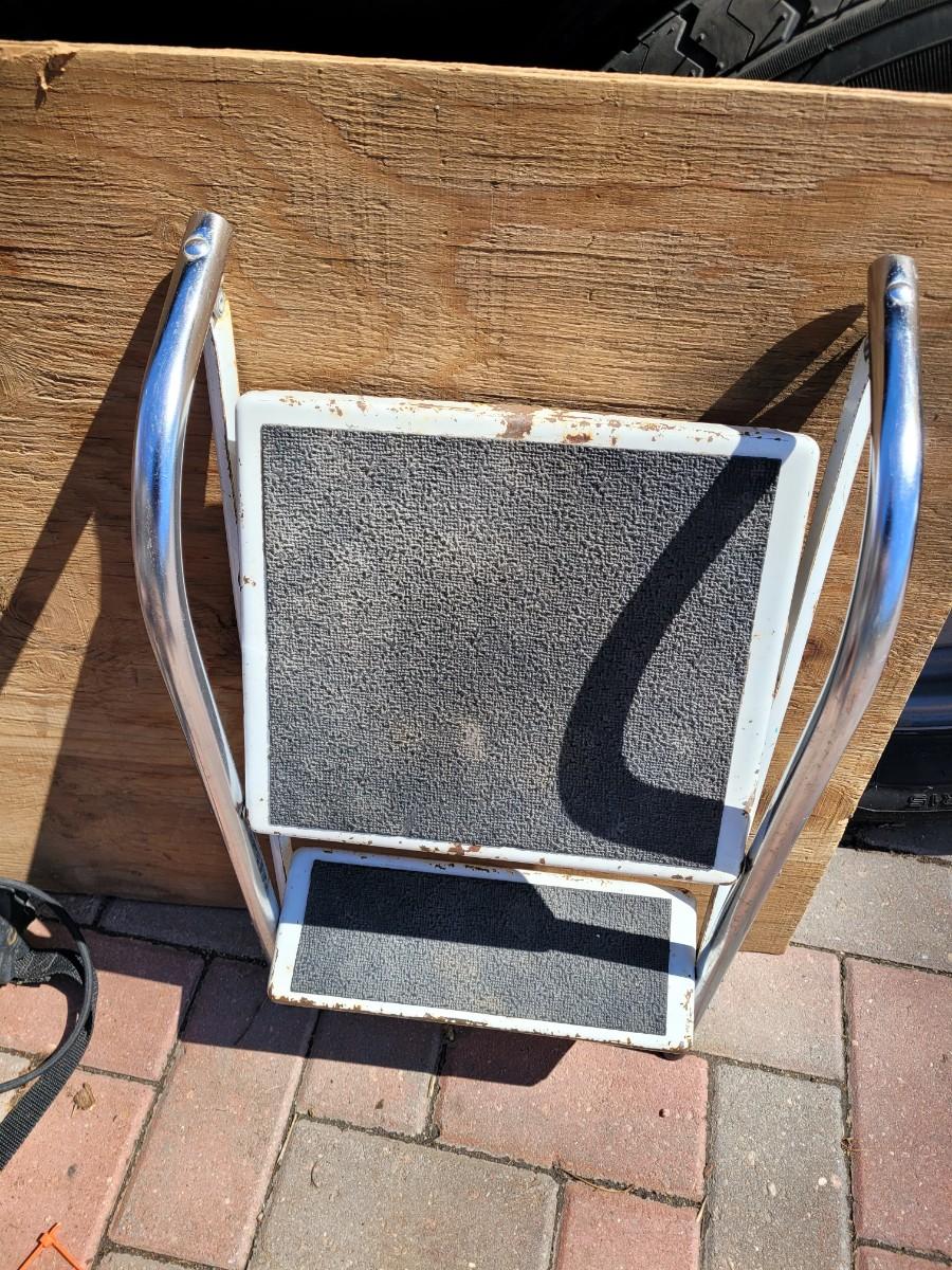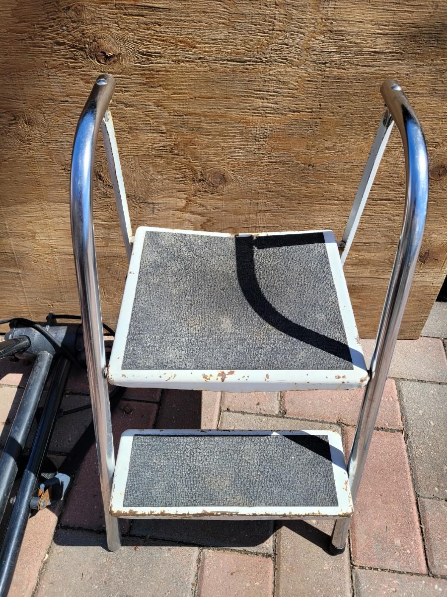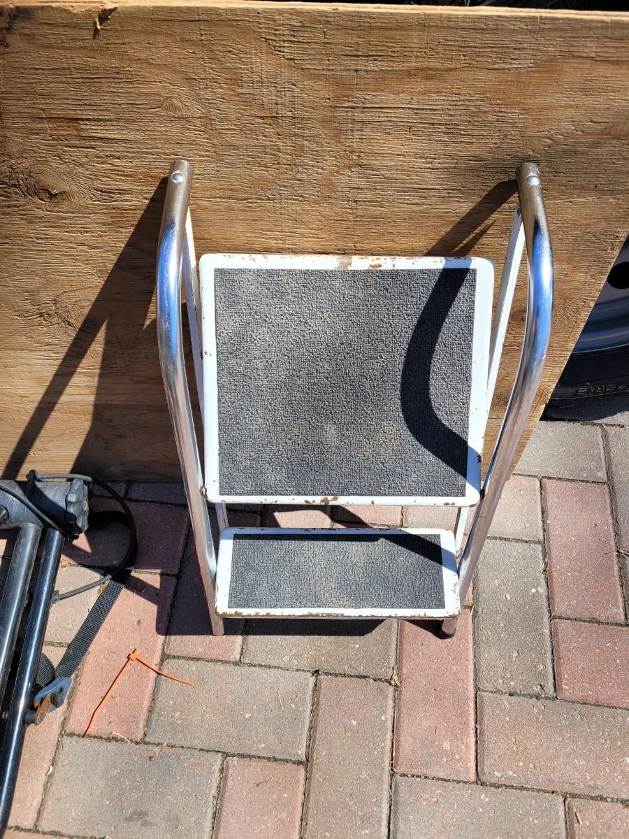 Vintage Peterson antique Folda Step ladder and collapsible adjustable bike carrier.